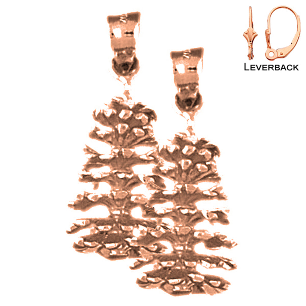 Pendientes de cono de pino 3D de 27 mm de oro de 14 quilates o 18 quilates
