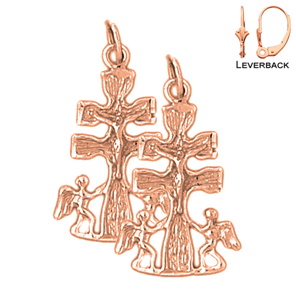 14K or 18K Gold 27mm Caravaca Crucifix Earrings