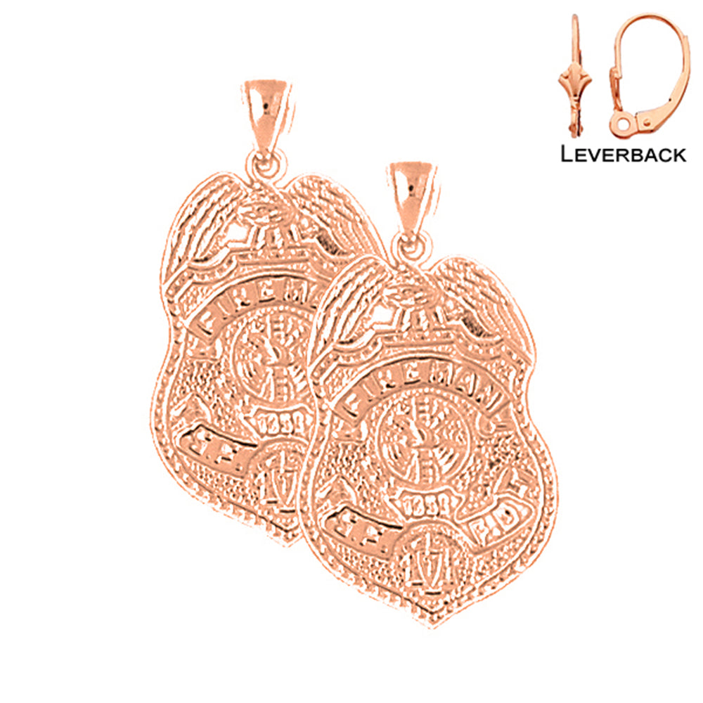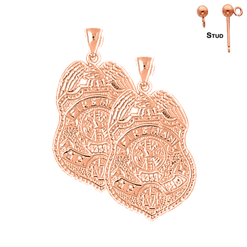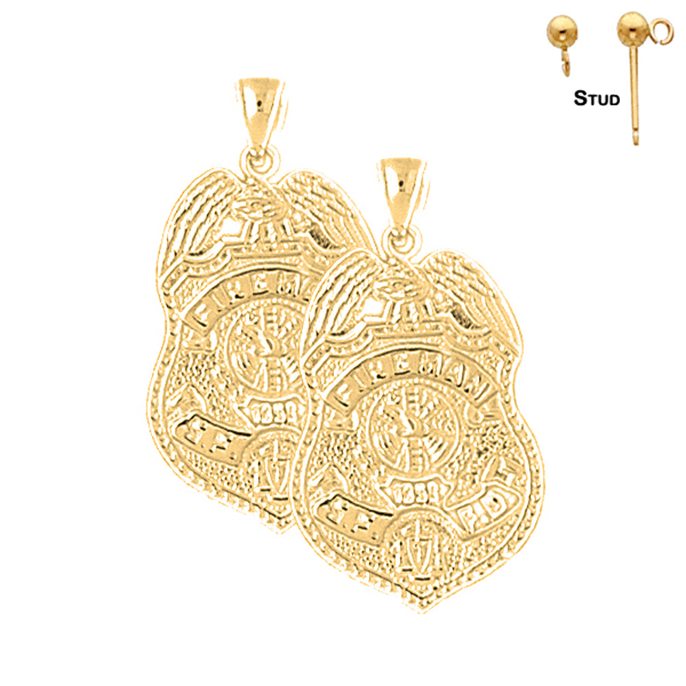 Pendientes del Departamento de Bomberos de oro de 14 quilates o 18 quilates de 27 mm