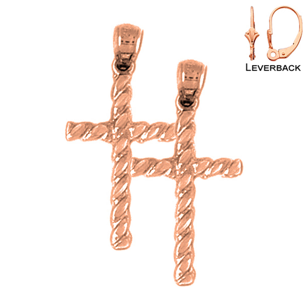 14K or 18K Gold 27mm Hollow Latin Cross Earrings