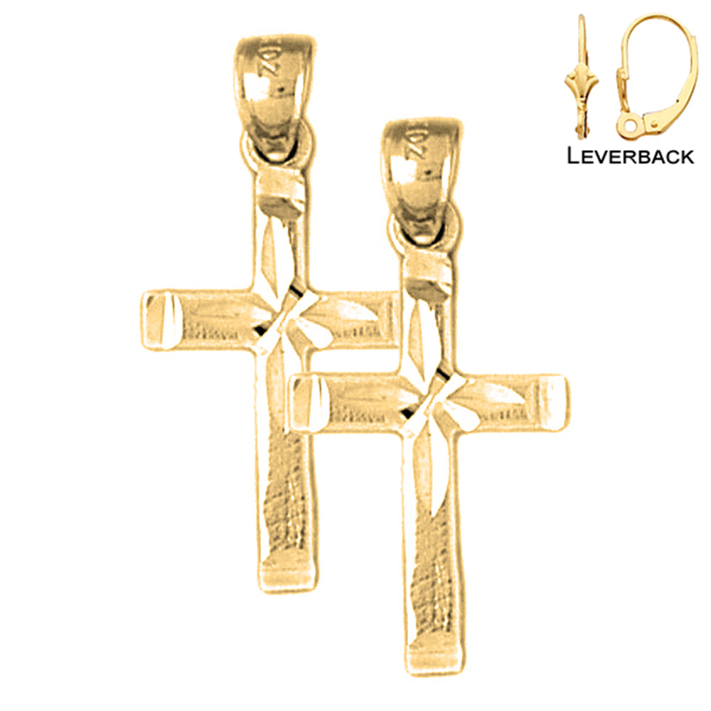 Estos son unos hermosos aretes de cruz latina de oro amarillo de 14k de 27 mm. Estos aretes de oro amarillo de 14k miden 27 mm de largo por 14 mm de ancho. JewelsObsession crea todas las joyas de oro en nuestras instalaciones de fabricación de última generación.