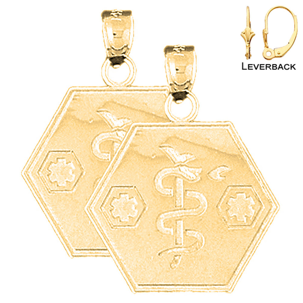 14K or 18K Gold 27mm Medical Alert Caduceus Earrings