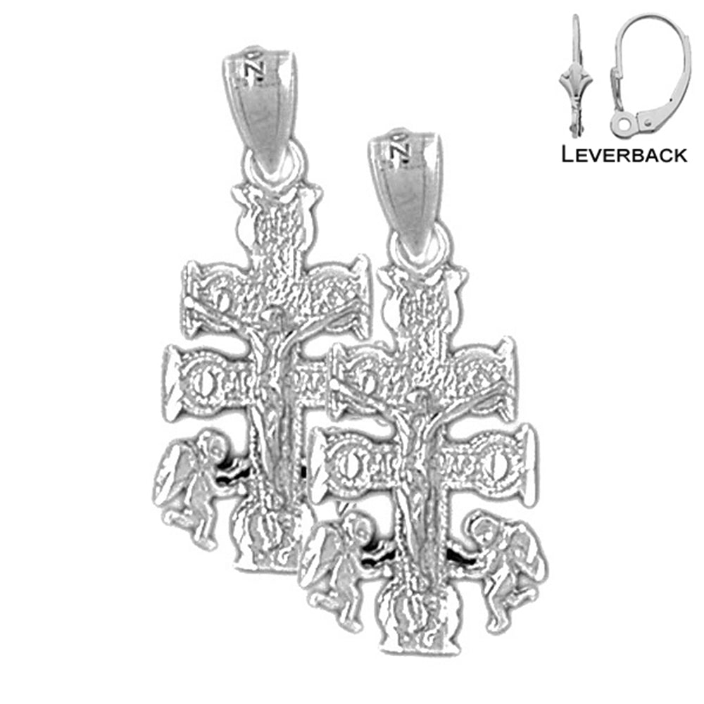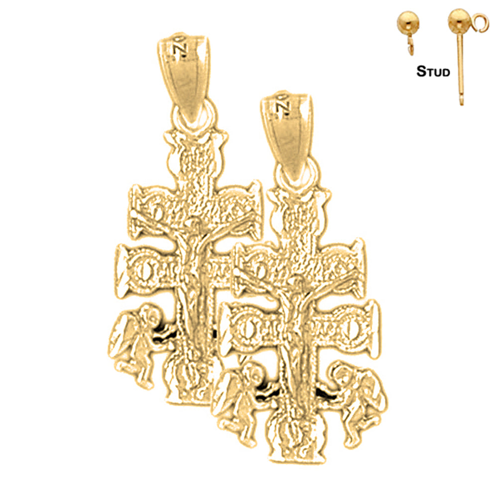 14K or 18K Gold 28mm Caravaca Crucifix Earrings