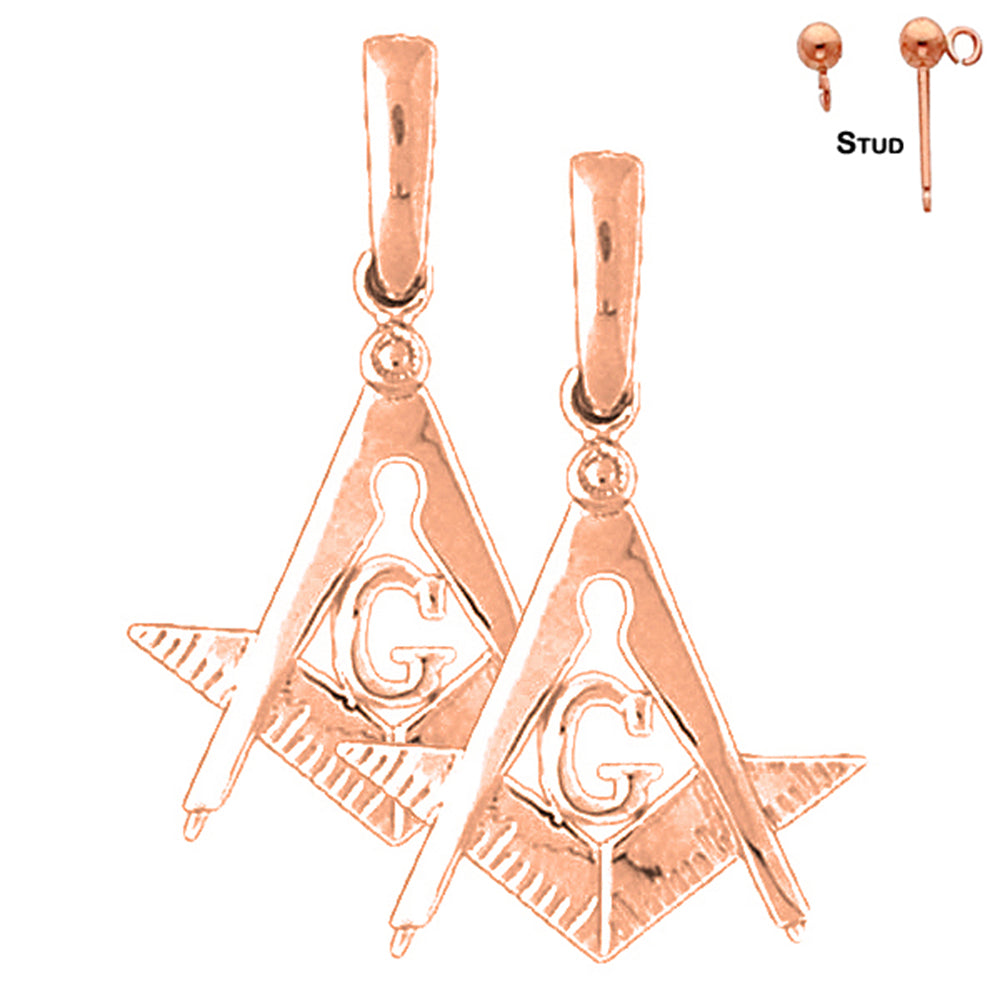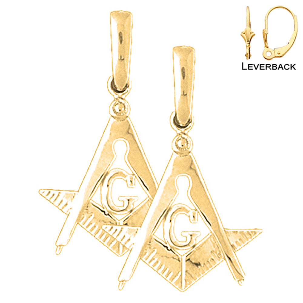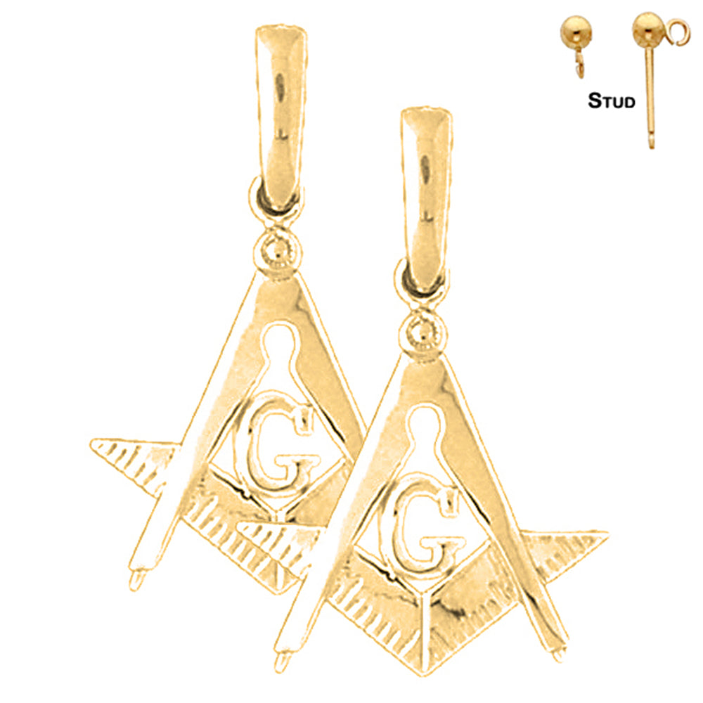 14K or 18K Gold 30mm American Freemasonry Earrings