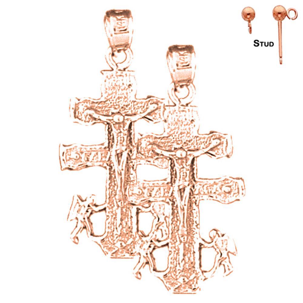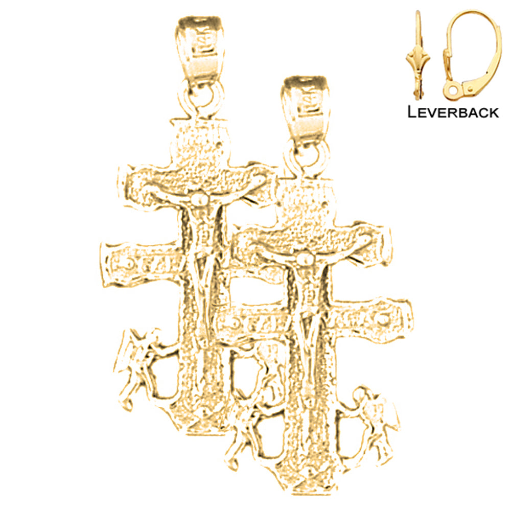 14K or 18K Gold 31mm Caravaca Crucifix Earrings