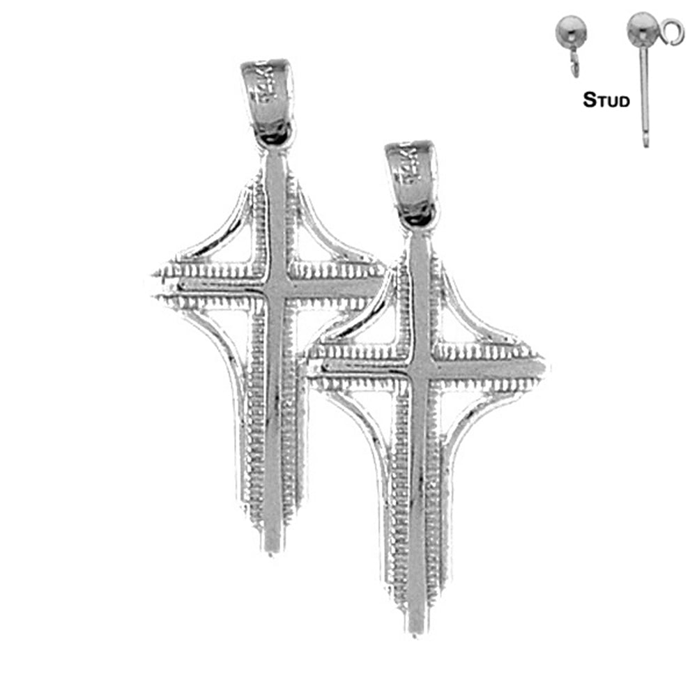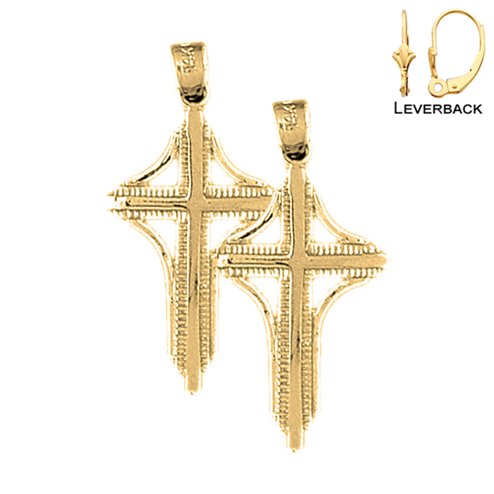 Estos son unos elegantes aretes de cruz latina de 31 mm de oro amarillo de 14k. Estos aretes de oro amarillo de 14k miden 31 mm de largo por 17 mm de ancho. JewelsObsession crea todas las joyas de oro en nuestras instalaciones de fabricación de última generación.