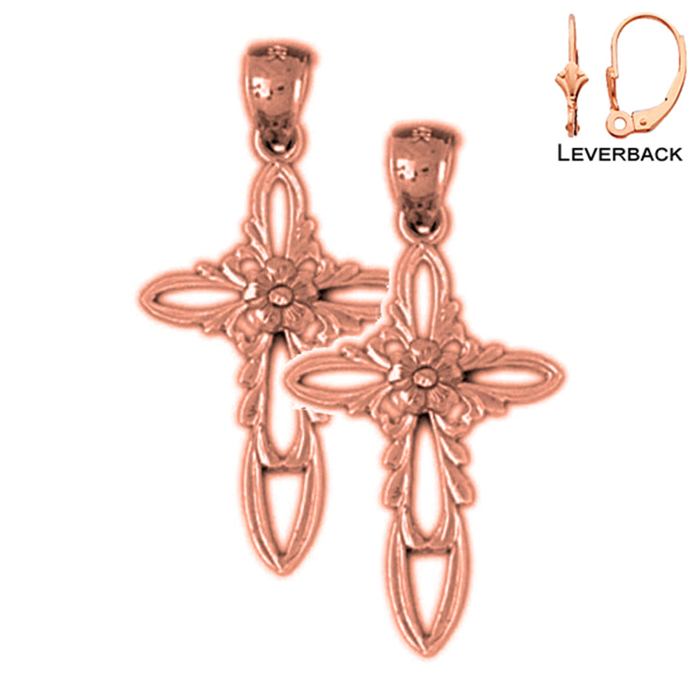 14K or 18K Gold 31mm Rose and Cross Earrings