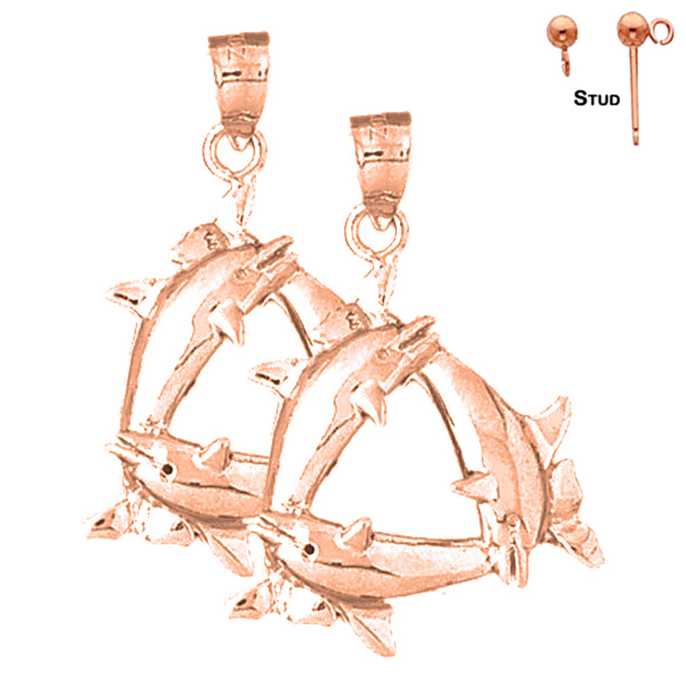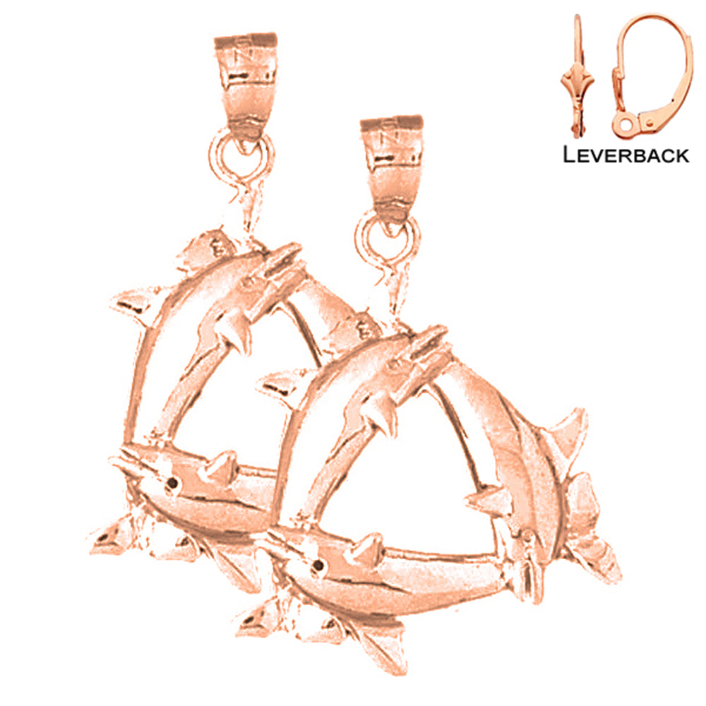 Pendientes de delfín de oro de 14 quilates o 18 quilates de 33 mm