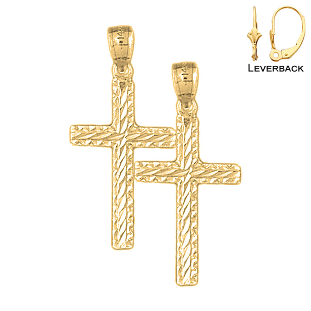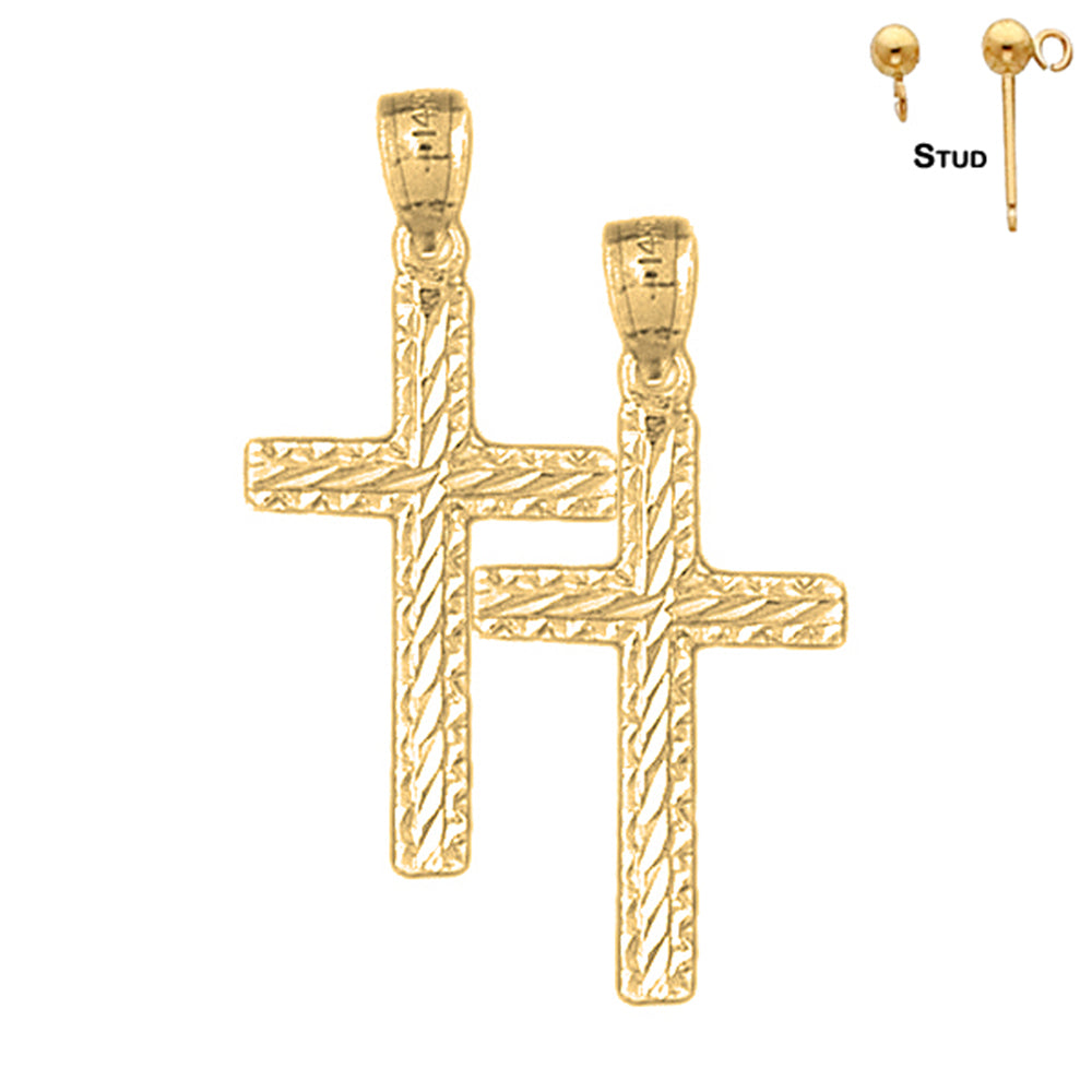 Estos son unos elegantes aretes de cruz latina de 33 mm de oro amarillo de 14k. Estos aretes de oro amarillo de 14k miden 33 mm de largo por 16 mm de ancho. JewelsObsession crea todas las joyas de oro en nuestras instalaciones de fabricación de última generación.
