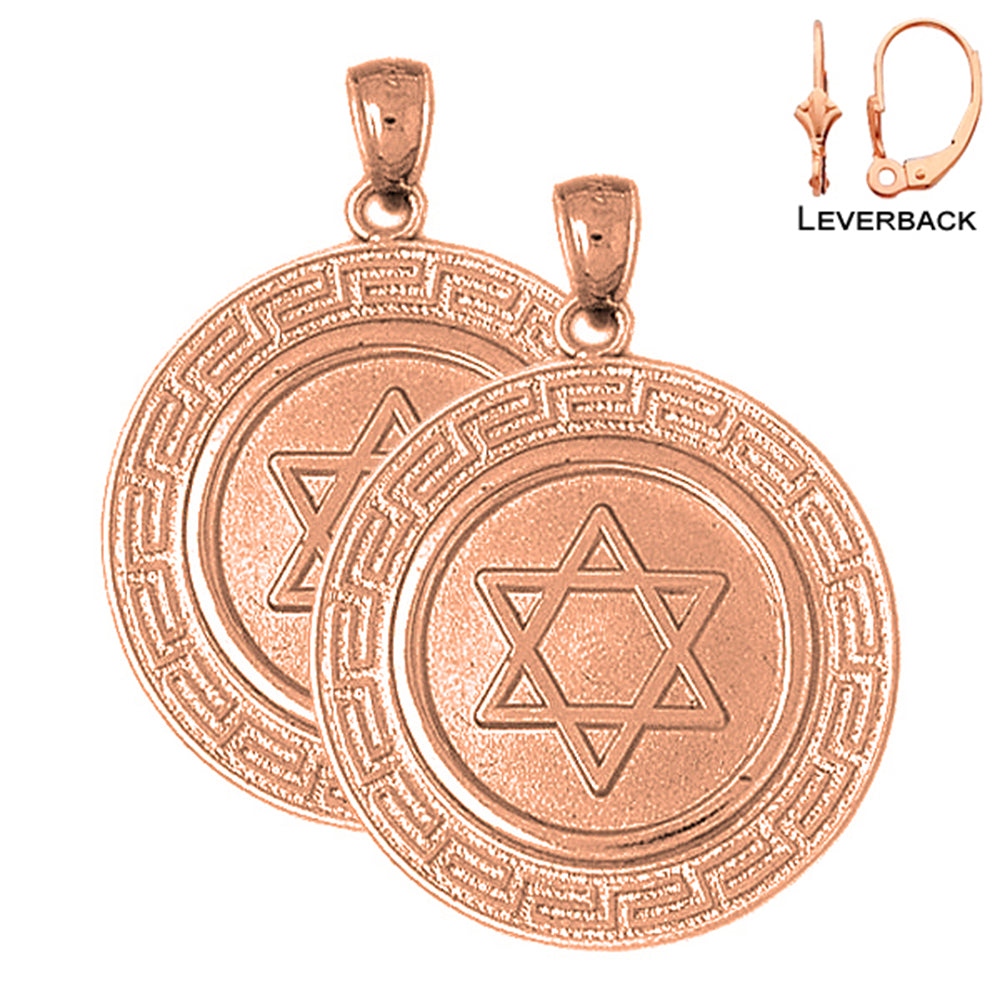 14K or 18K Gold 33mm Star of David with Greek Key Border Earrings