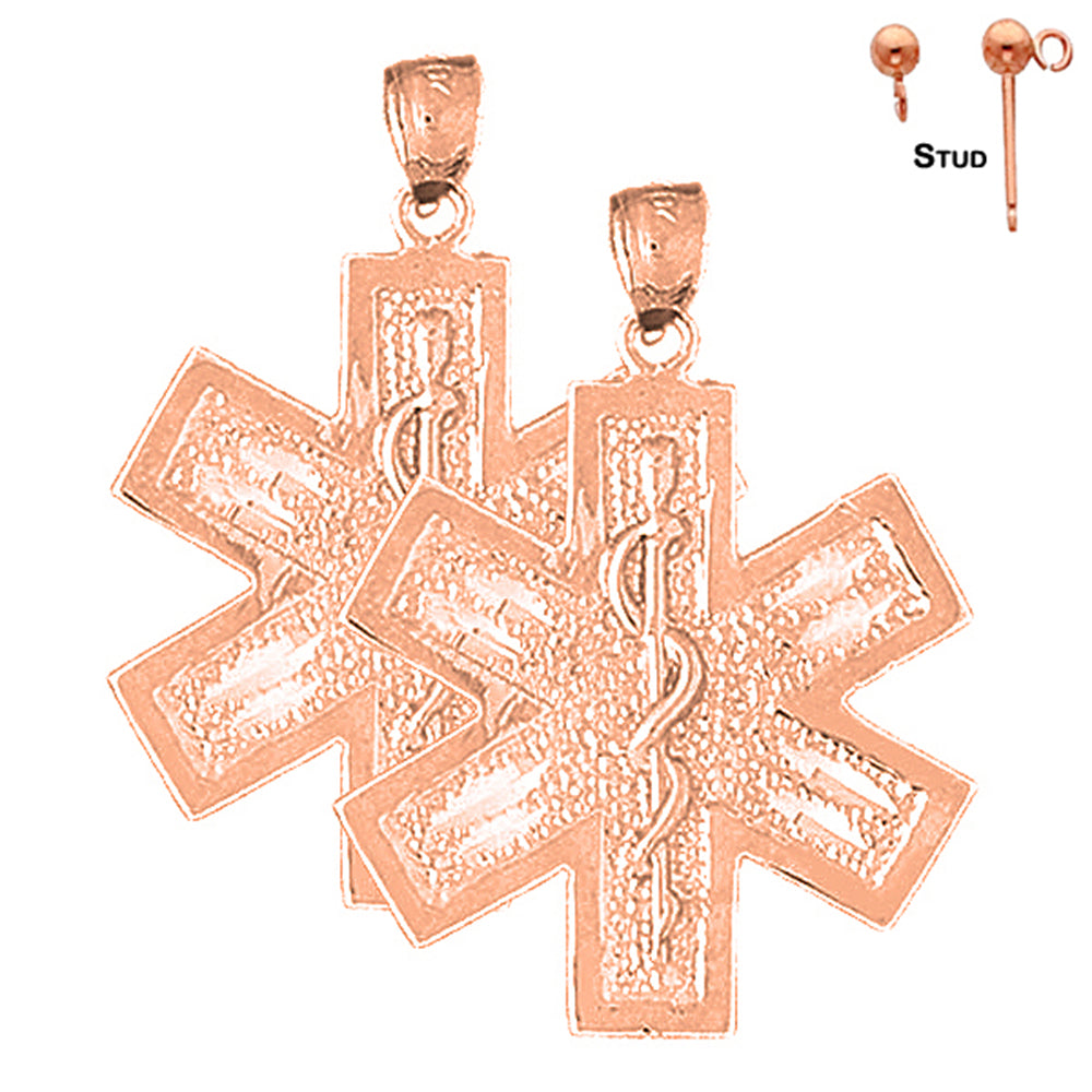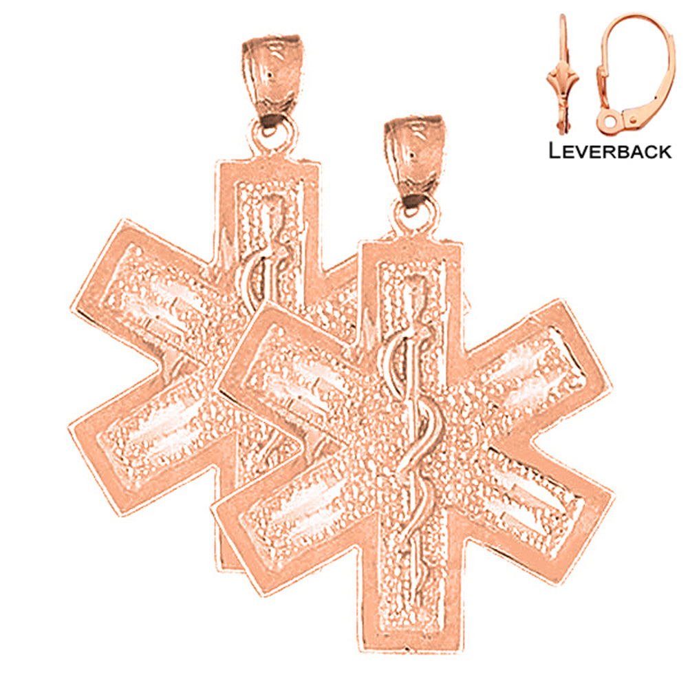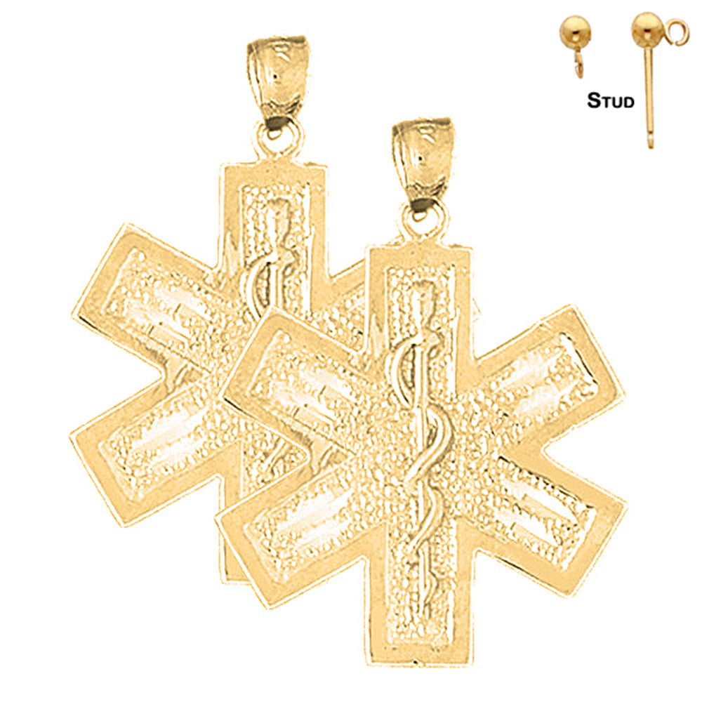 14K or 18K Gold 34mm Medical Alert Caduceus Earrings