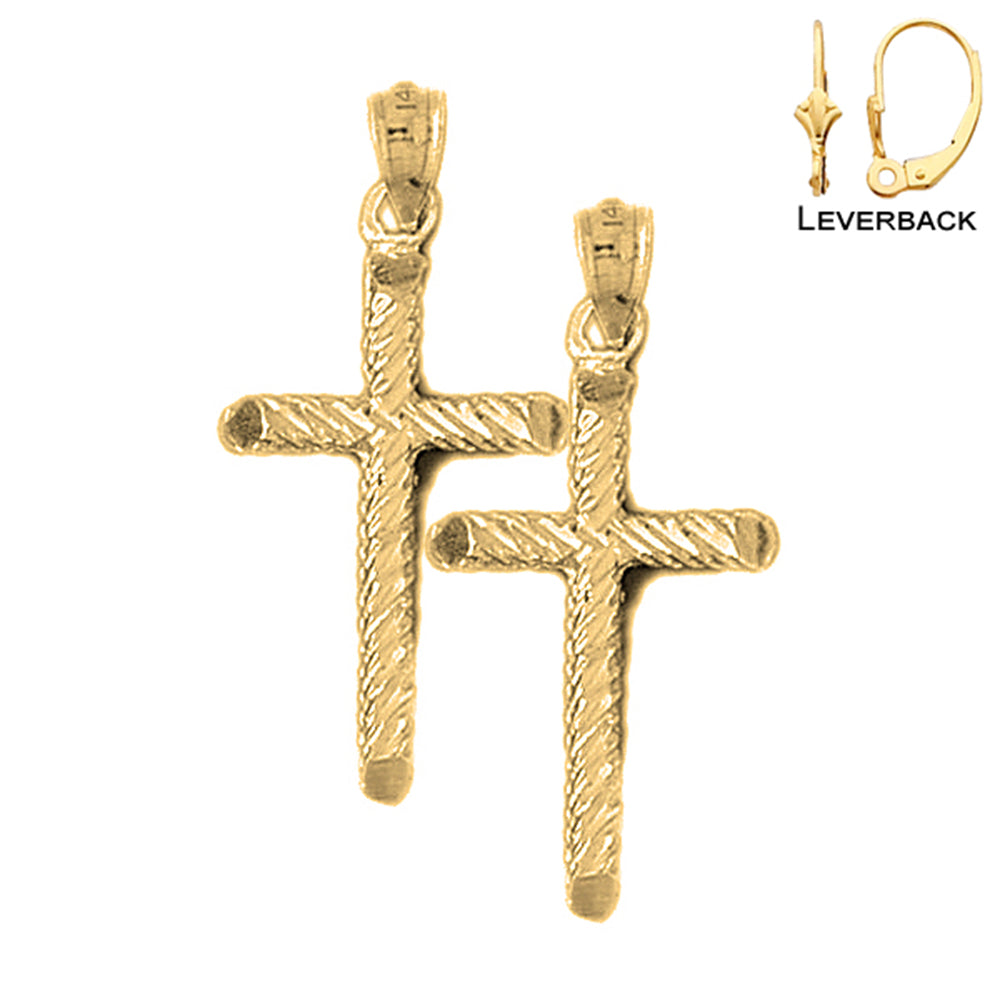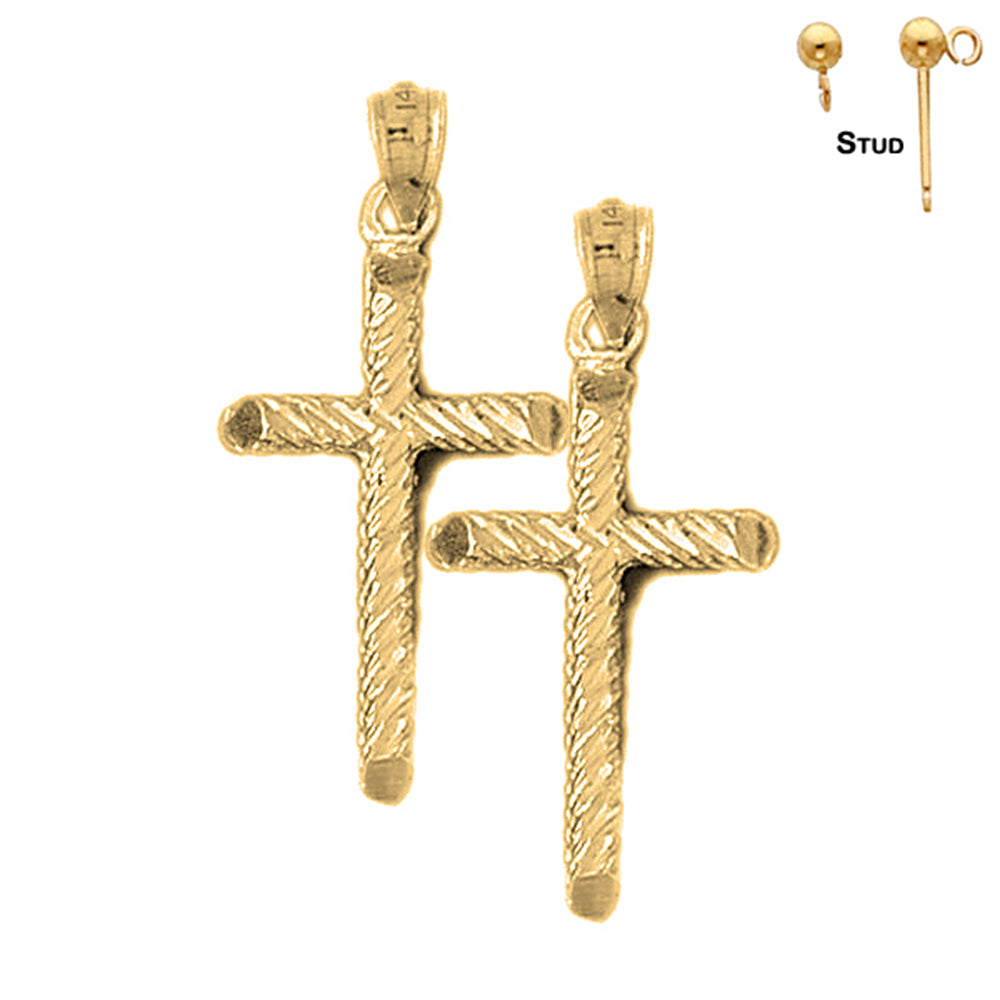 14K or 18K Gold 35mm Hollow Latin Cross Earrings