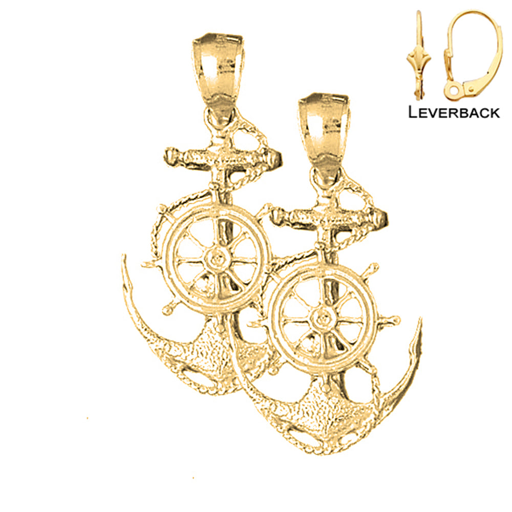 14K or 18K Gold 36mm Anchor With Ships Wheel Earrings