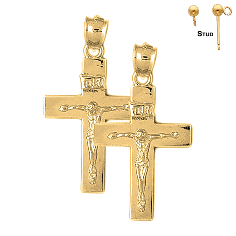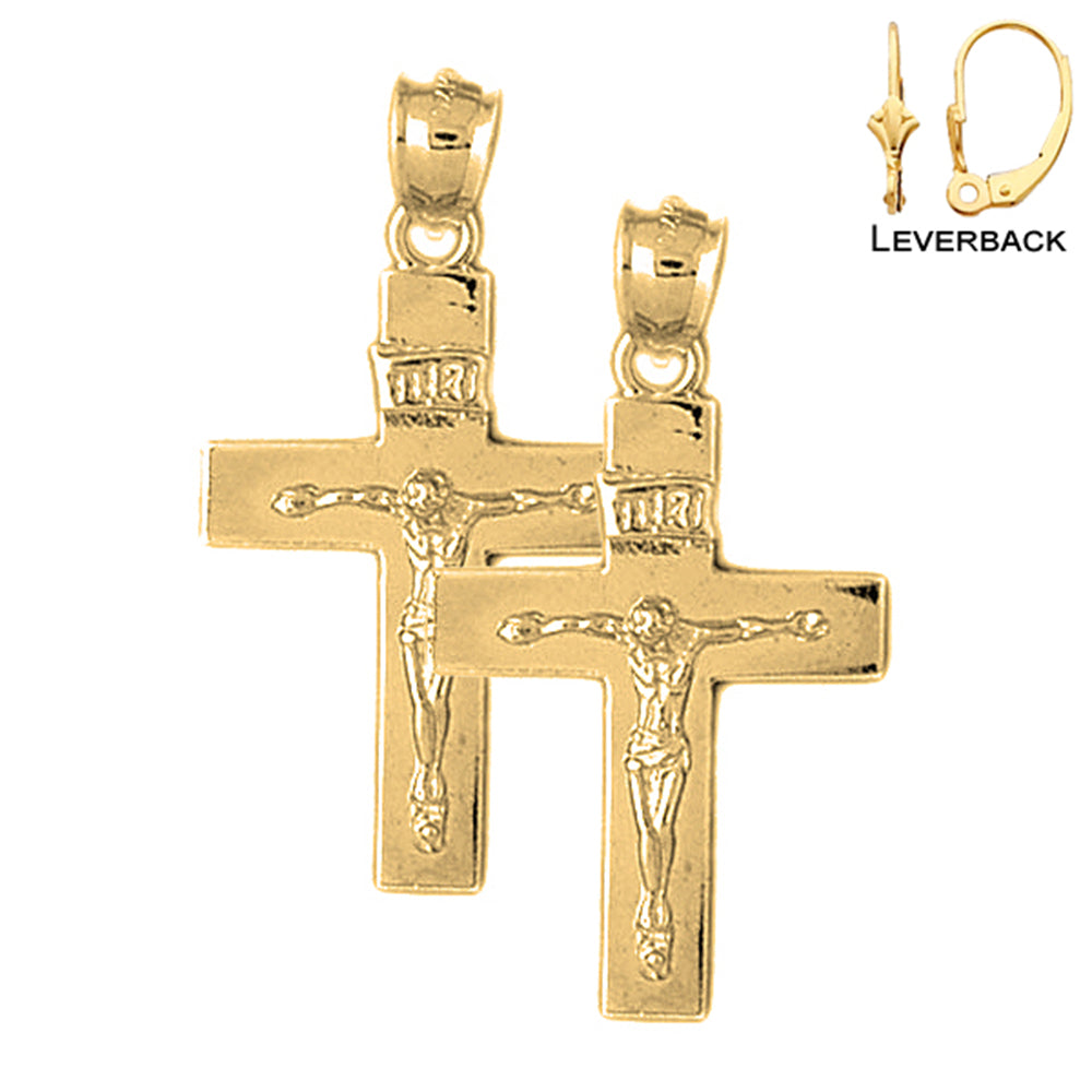 14K or 18K Gold 36mm INRI Crucifix Earrings