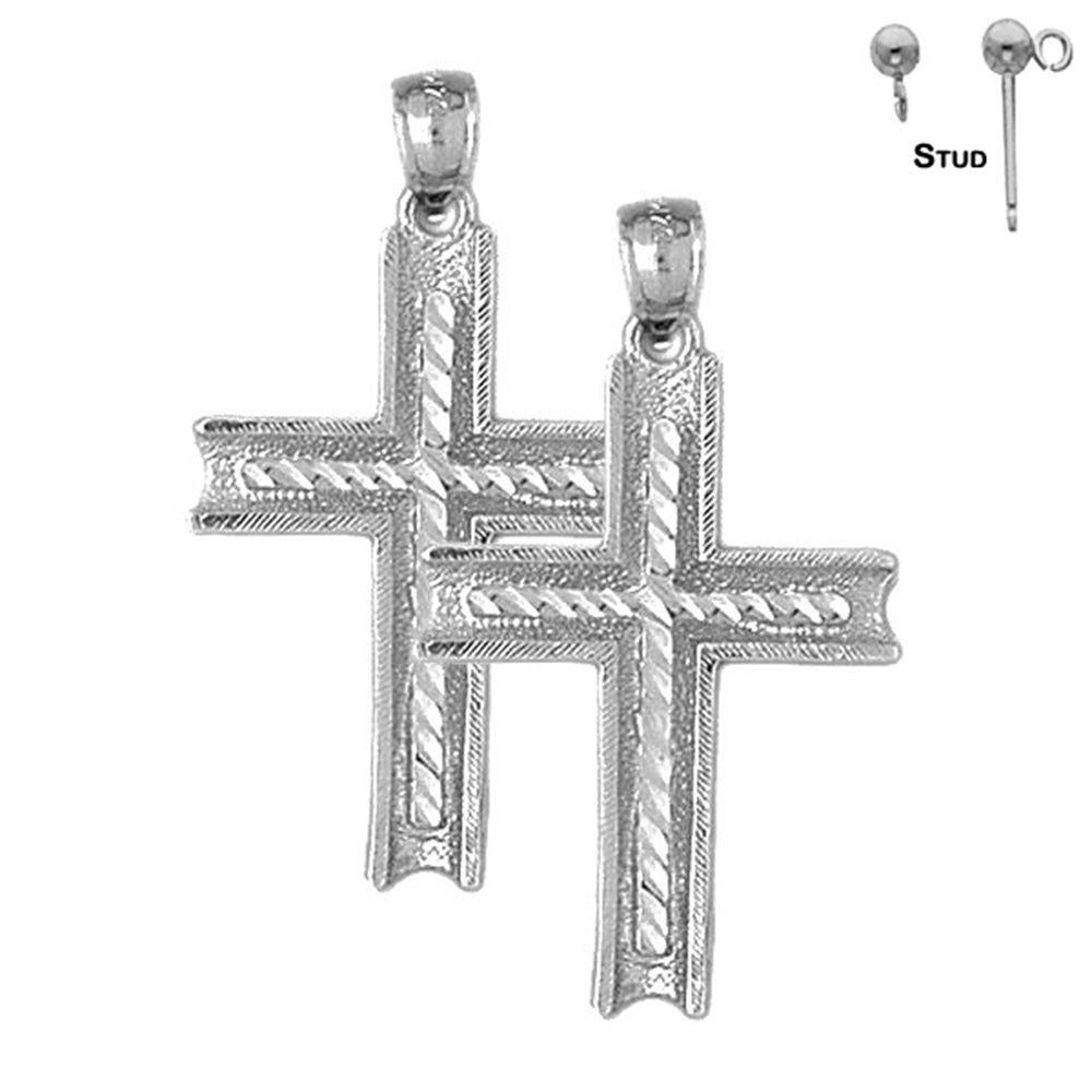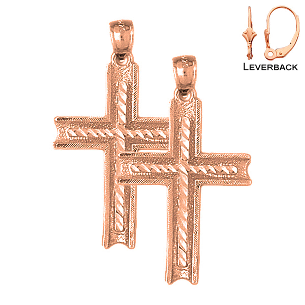 Estos son unos hermosos aretes de cruz latina de 36 mm de oro amarillo de 14k. Estos aretes de oro amarillo de 14k miden 36 mm de largo por 82 mm de ancho. JewelsObsession crea todas las joyas de oro en nuestras instalaciones de fabricación de última generación.