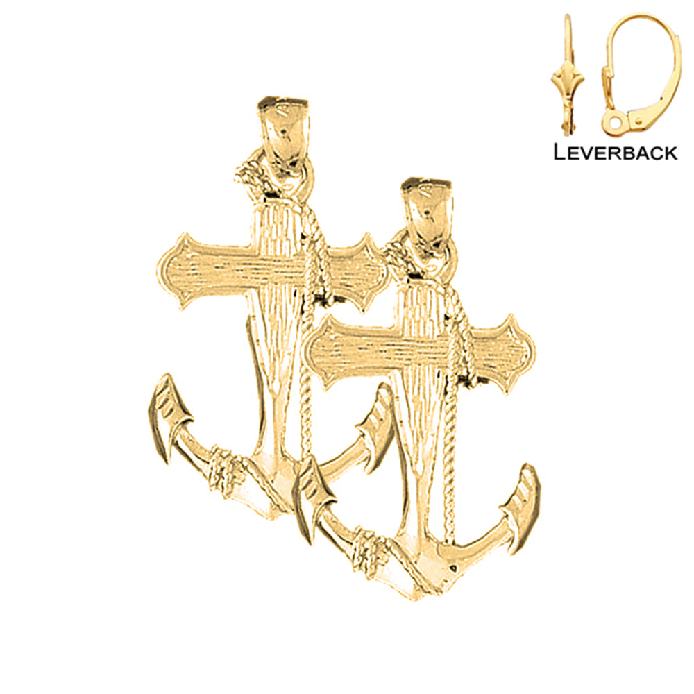 14K or 18K Gold 37mm Anchor With Rope Earrings