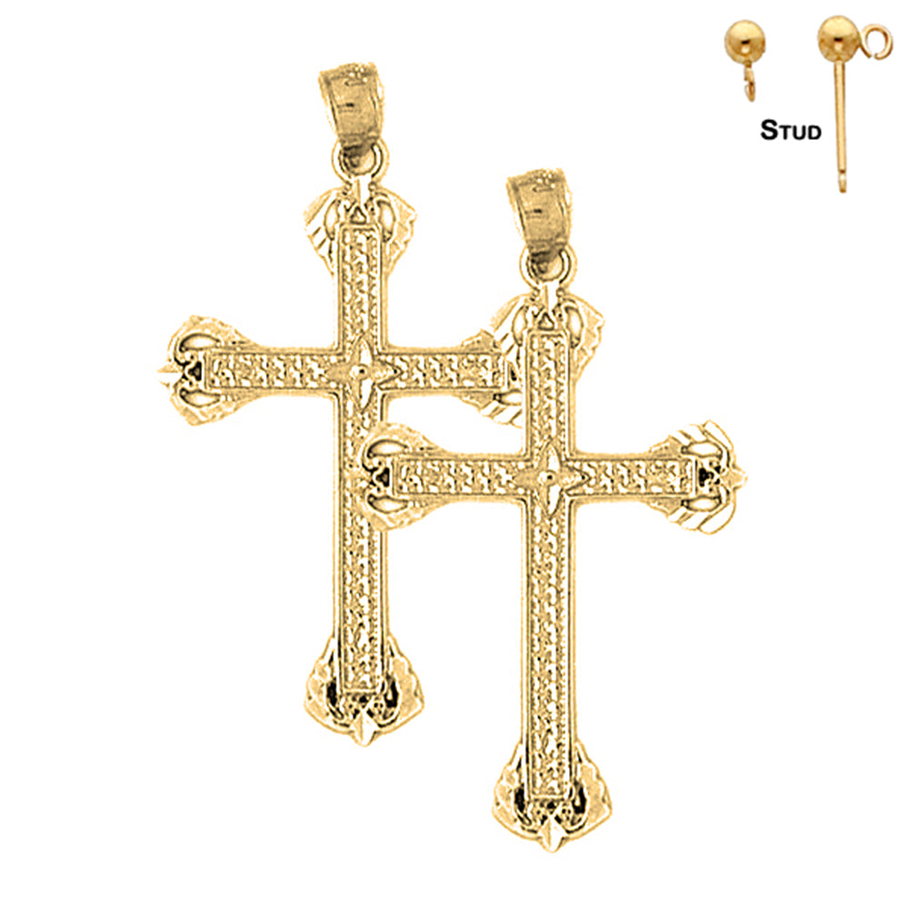 Estos son unos impresionantes aretes de cruz latina de 37 mm de oro amarillo de 14k. Estos aretes de oro amarillo de 14k miden 37 mm de largo por 22 mm de ancho. JewelsObsession crea todas las joyas de oro en nuestras instalaciones de fabricación de última generación.