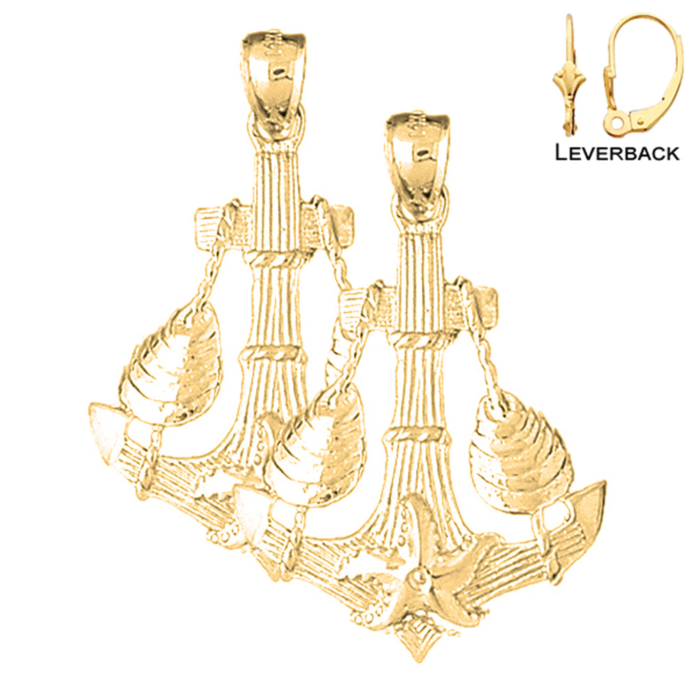 14K or 18K Gold 38mm Anchor With Shells And Starfish Earrings
