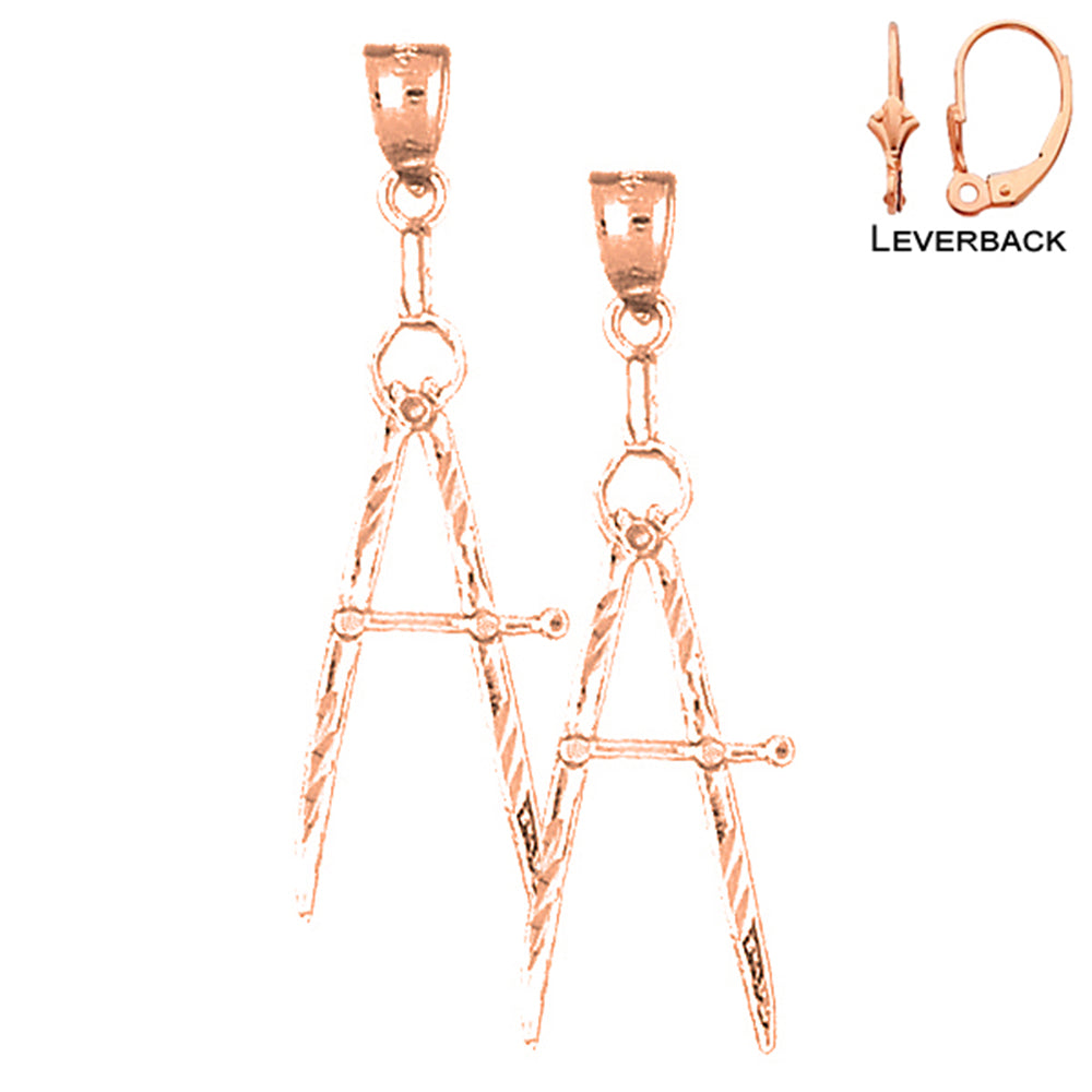 14K or 18K Gold 38mm Drawing Compass Earrings