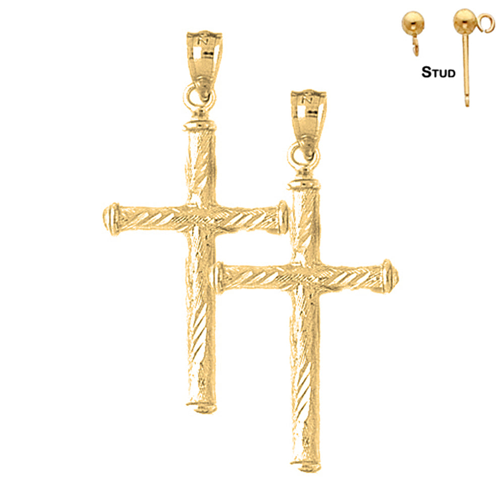 14K or 18K Gold 40mm Hollow Latin Cross Earrings