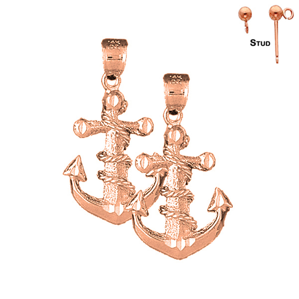 Pendientes de ancla con cuerda de oro de 14 quilates o 18 quilates de 44 mm