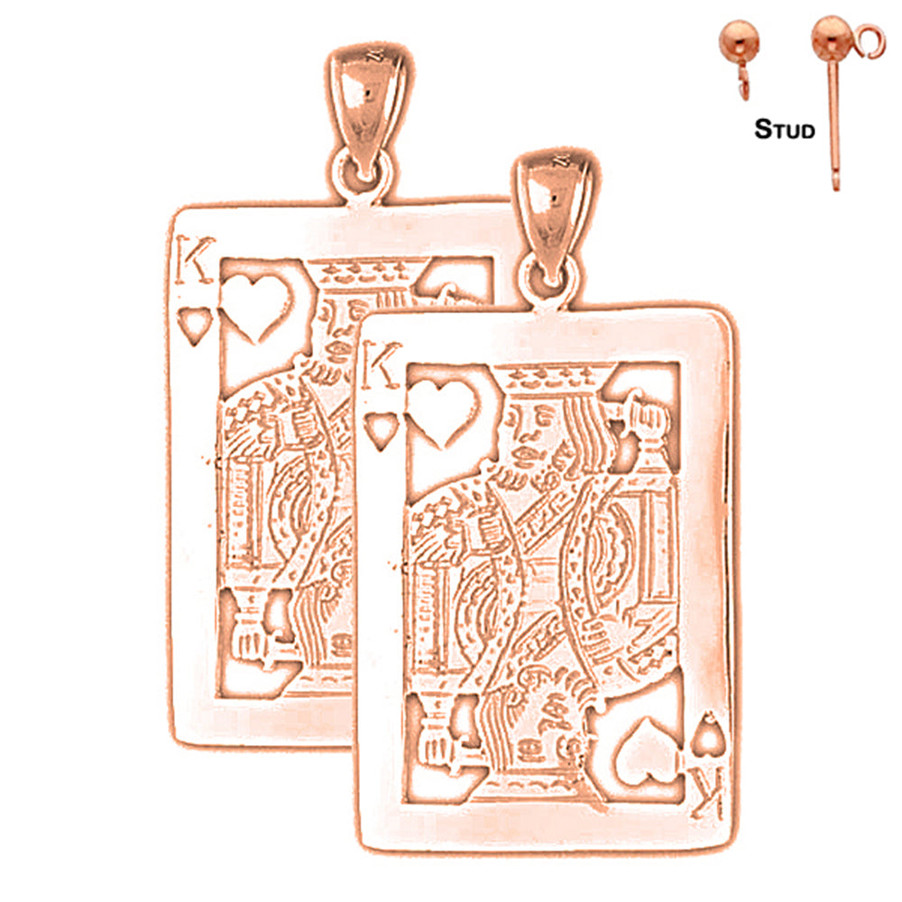 14K or 18K Gold 44mm Playing Cards, King Of Hearts Earrings