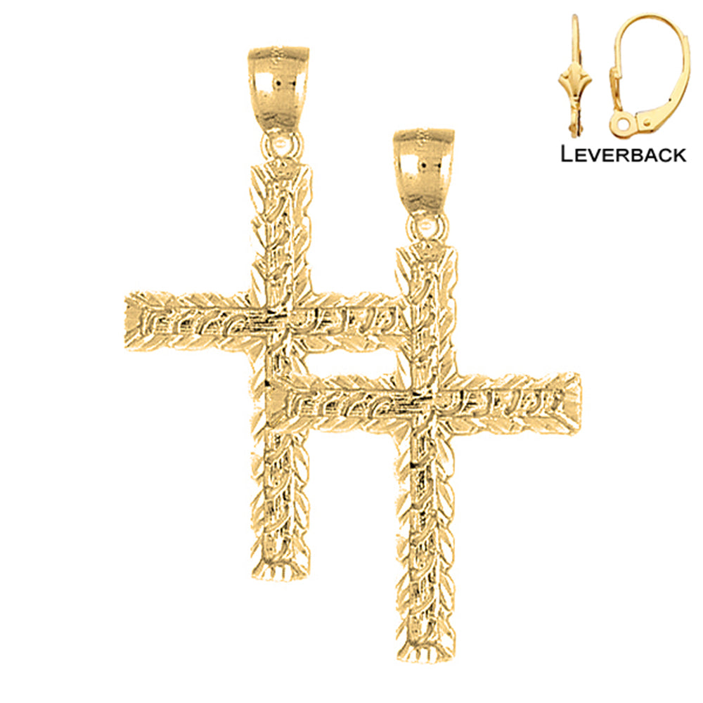 Estos son unos hermosos aretes de cruz latina de 45 mm de oro amarillo de 14k. Estos aretes de oro amarillo de 14k miden 45 mm de largo por 26 mm de ancho. JewelsObsession crea todas las joyas de oro en nuestras instalaciones de fabricación de última generación.