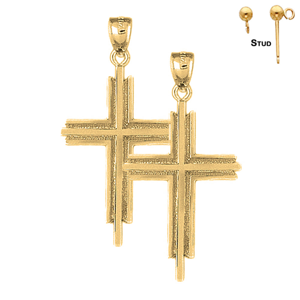 Estos son unos impresionantes aretes de cruz latina de 45 mm de oro amarillo de 14 k. Estos aretes de oro amarillo de 14k miden 45 mm de largo por 84 mm de ancho. JewelsObsession crea todas las joyas de oro en nuestras instalaciones de fabricación de última generación.