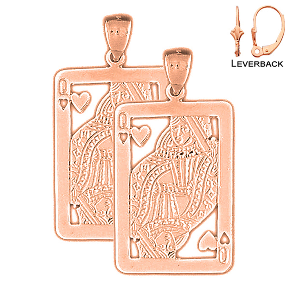 14K or 18K Gold 45mm Playing Cards, Queen Of Hearts Earrings