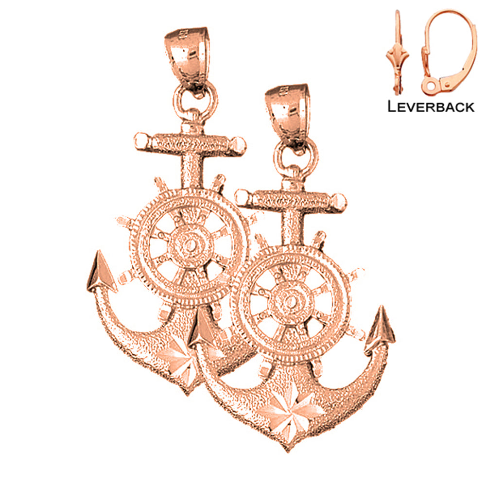 14K or 18K Gold 46mm Anchor With Ships Wheel Earrings