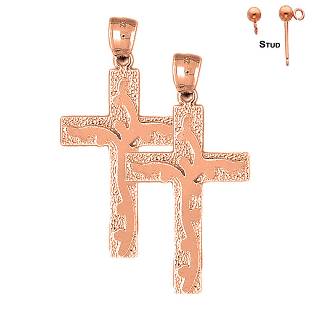 Aretes con cruz de vid latina en oro de 14 quilates o 18 quilates