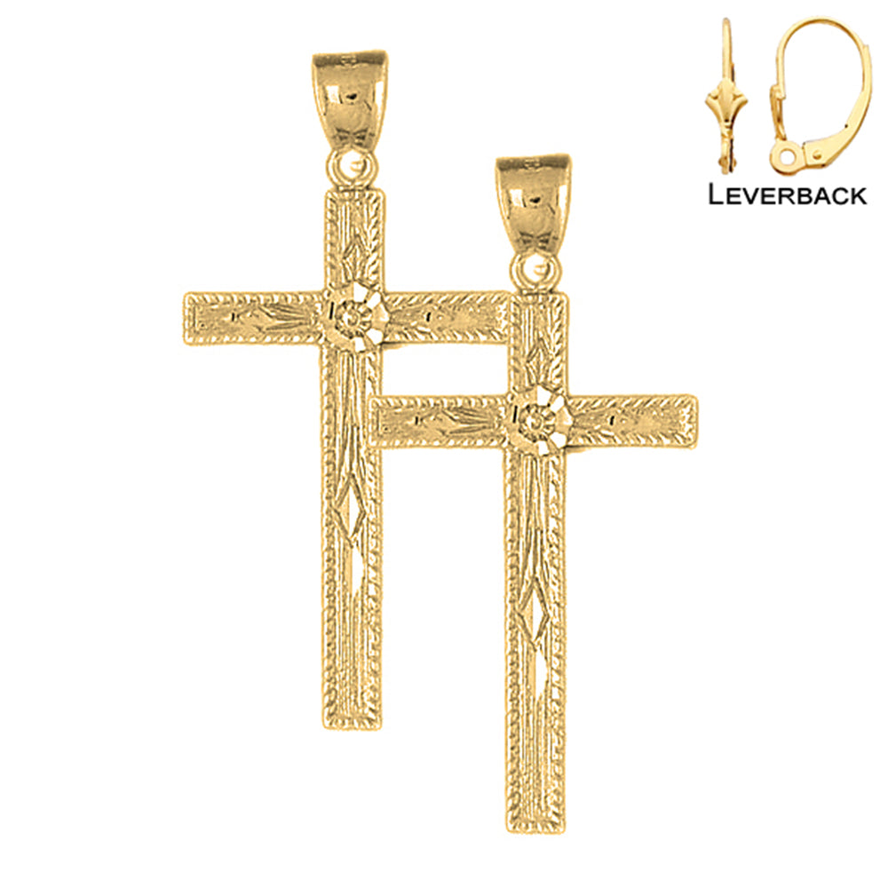 Estos son unos hermosos aretes de cruz latina de oro amarillo de 14k de 48 mm. Estos aretes de oro amarillo de 14k miden 48 mm de largo por 24 mm de ancho. JewelsObsession crea todas las joyas de oro en nuestras instalaciones de fabricación de última generación.