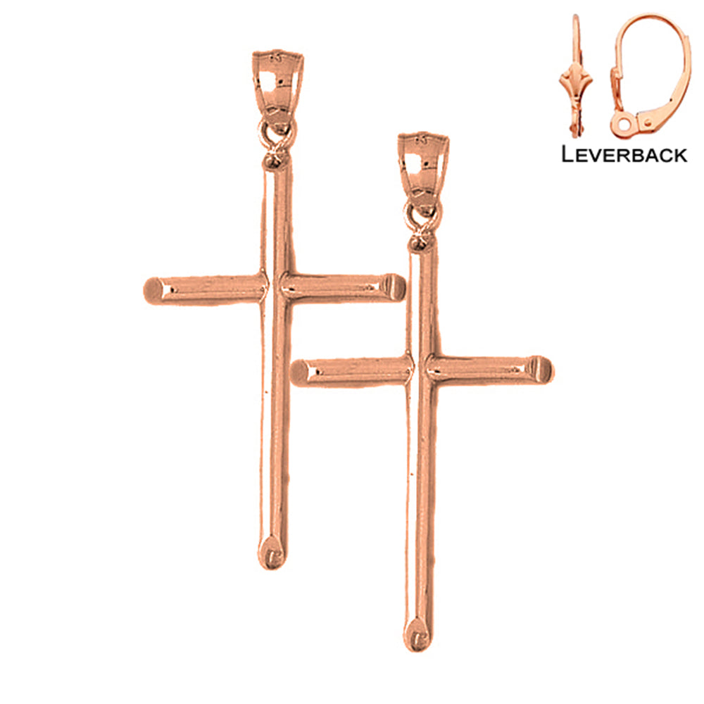 14K or 18K Gold 53mm Hollow Latin Cross Earrings