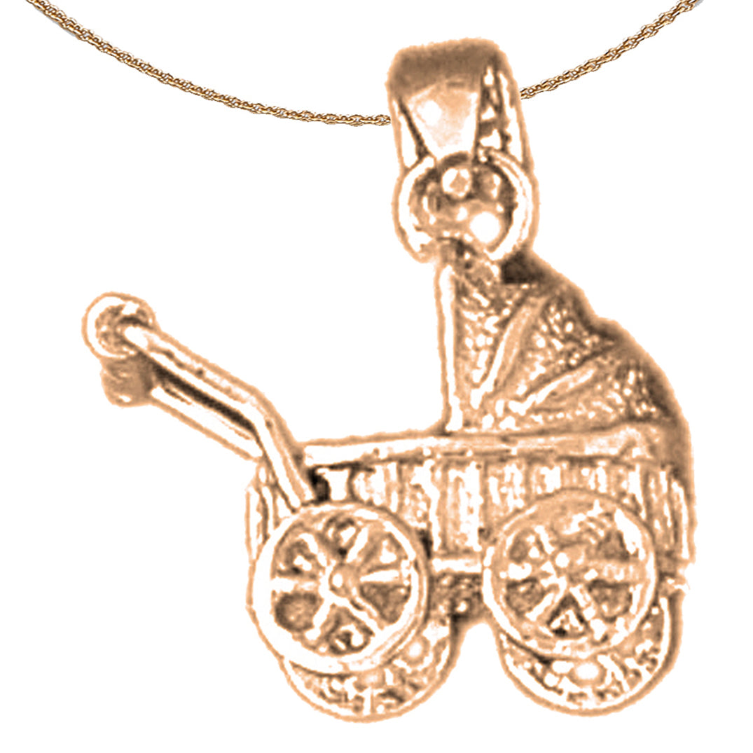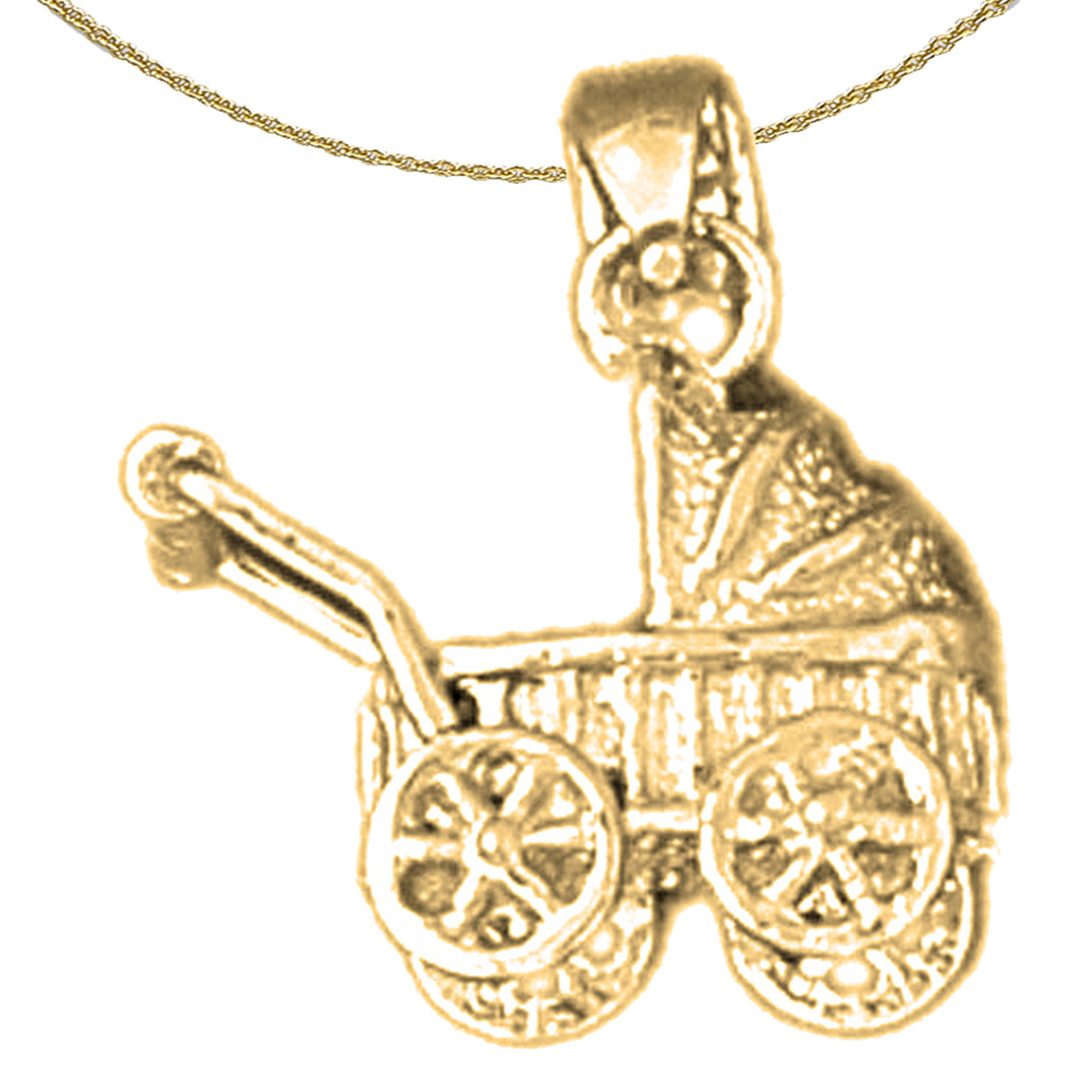 10K, 14K or 18K Gold 3D Baby Stroller Pendant