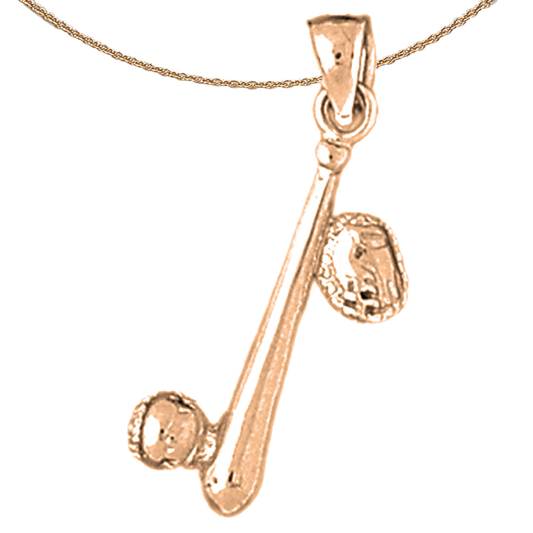 10K, 14K or 18K Gold 3D Baseball Bat, Mitt, And Ball Pendant