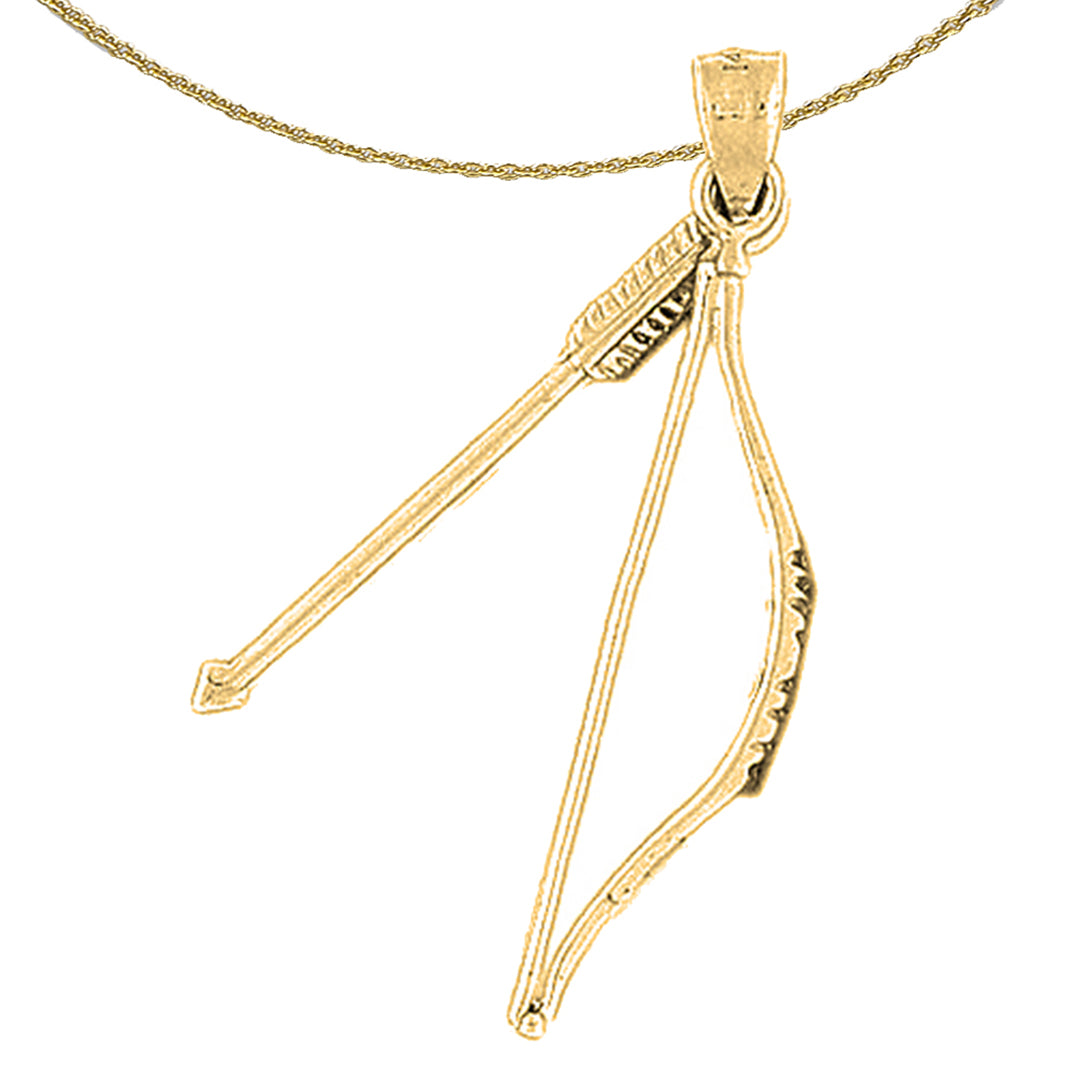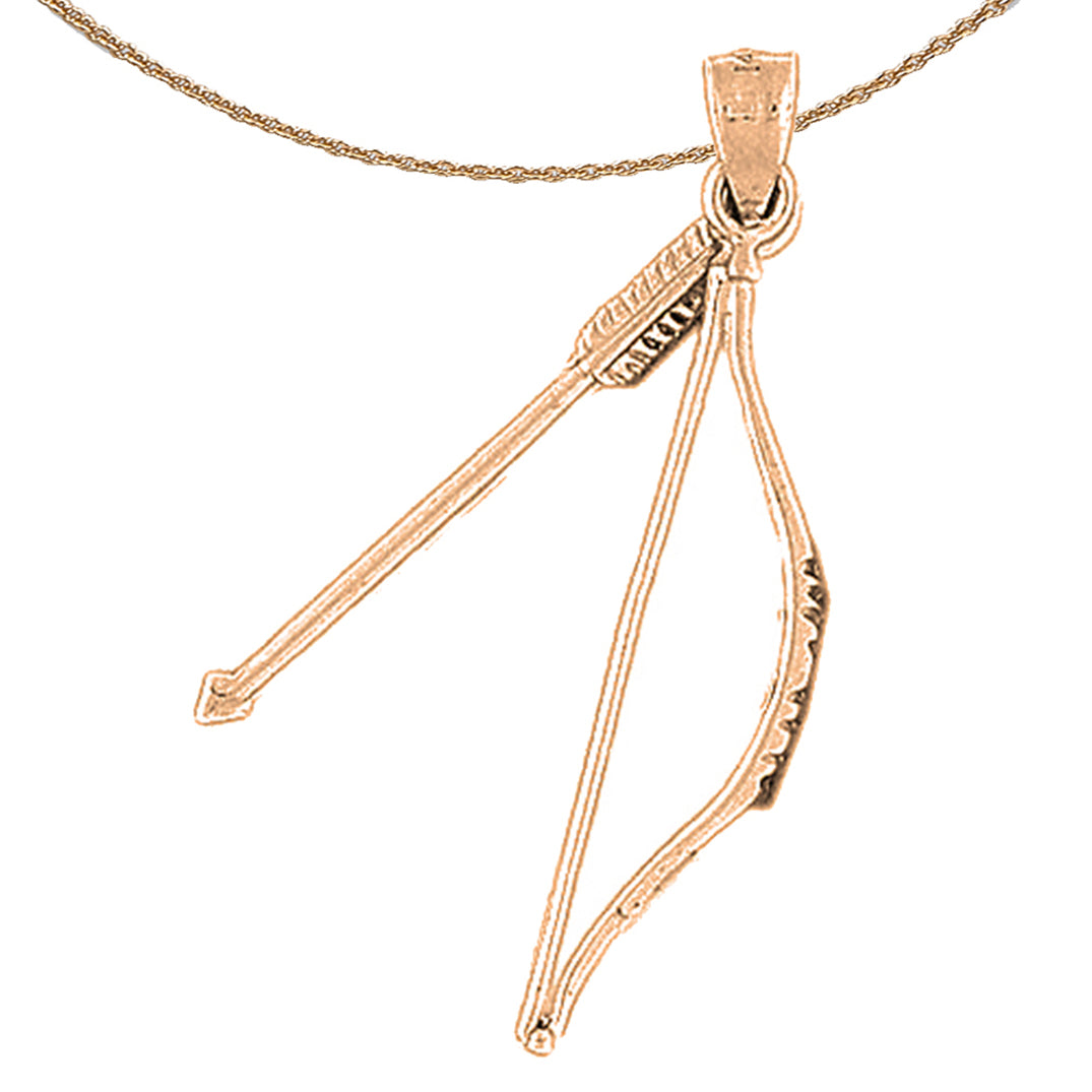 Colgante de arco y flecha 3D de oro de 14 quilates o 18 quilates