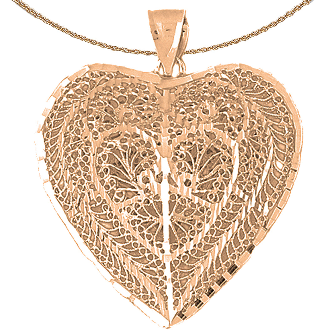 Colgante de corazón de filigrana 3D de oro de 10 quilates, 14 quilates o 18 quilates