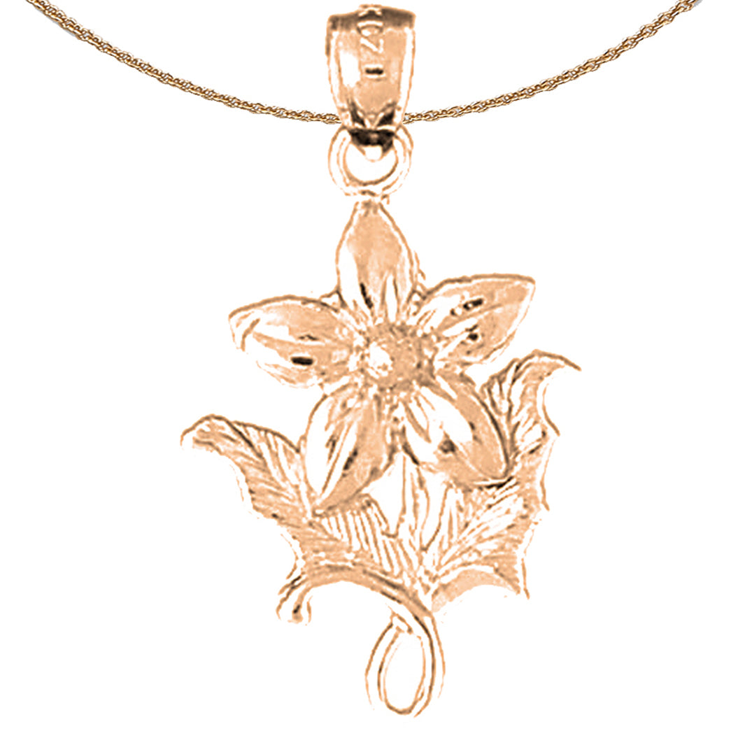 Este es un impresionante colgante de flor de oro de 14K o 18K. Este colgante de oro de 14 quilates o 18 quilates mide 30 mm de largo por 17 mm de ancho. La medida incluye fardo. JewelsObsession crea todas las joyas de oro en nuestras instalaciones de fabricación de última generación.