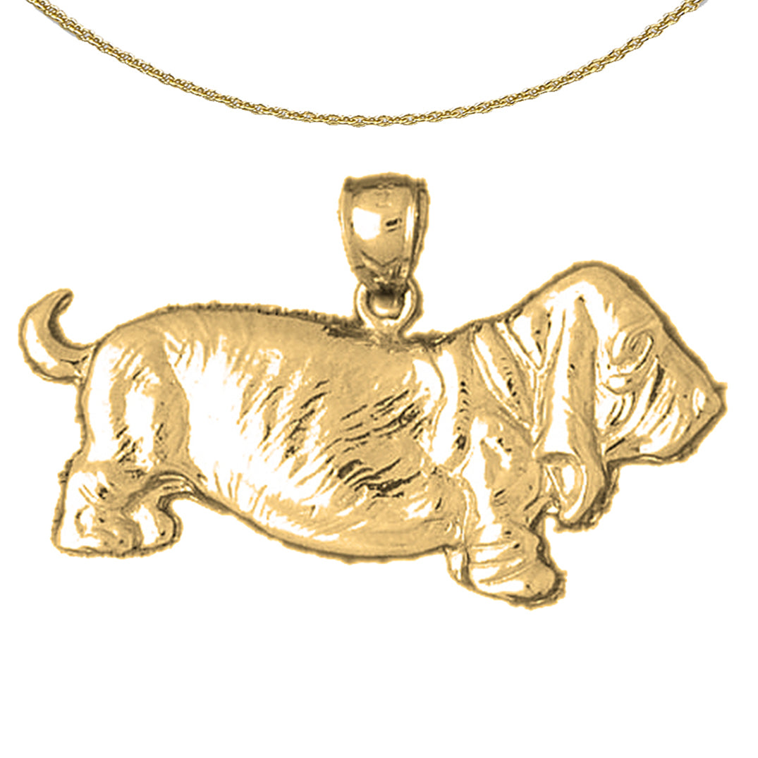 10K, 14K or 18K Gold Basset Hound Dog Pendant