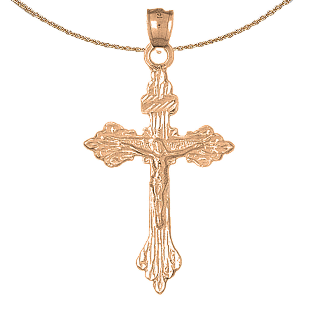 10K, 14K or 18K Gold Budded Crucifix Pendant