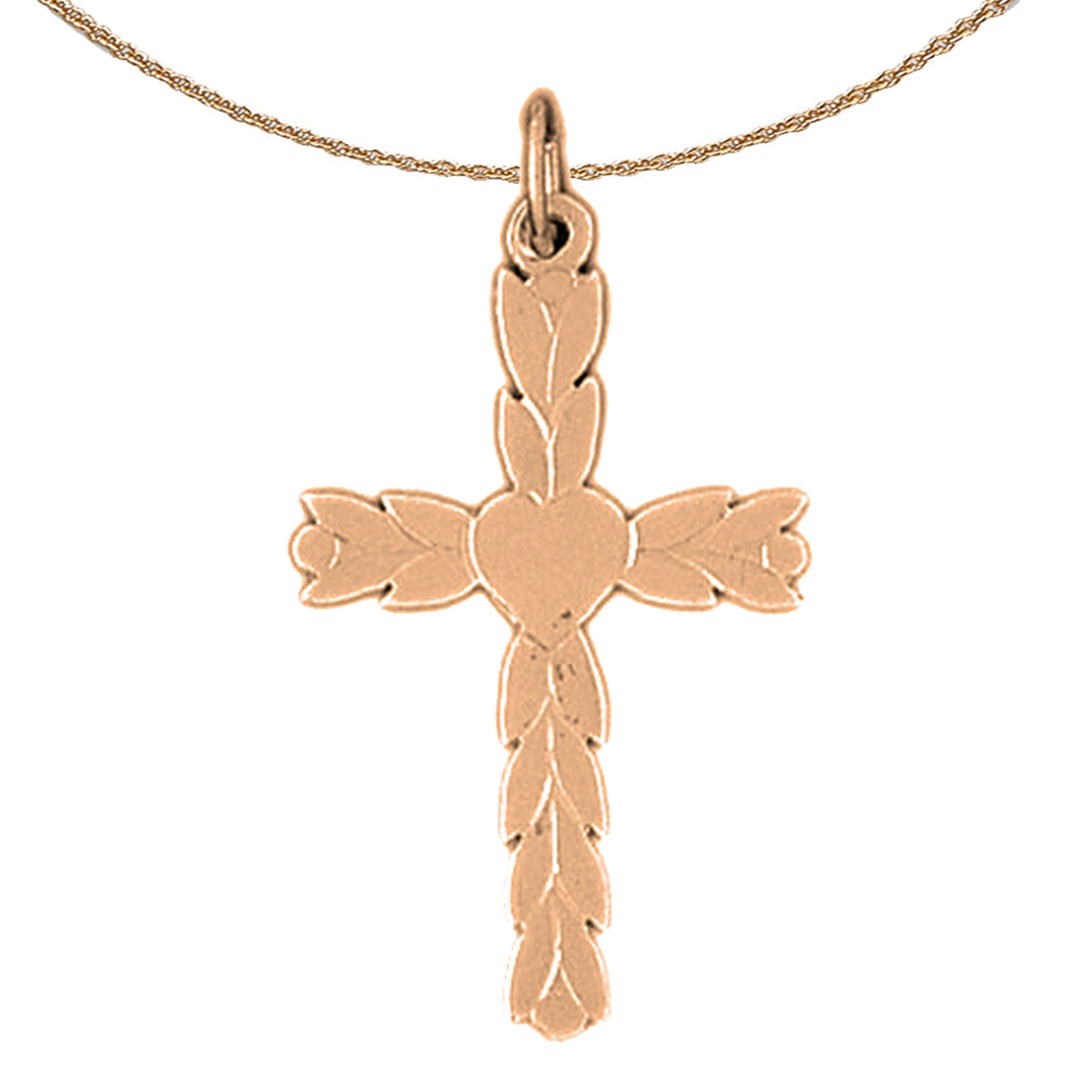 Colgante de cruz de corazón con brotes de oro de 14 quilates o 18 quilates