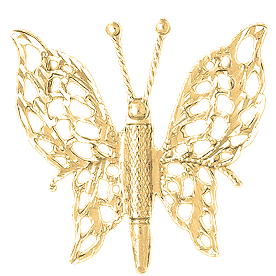 Este precioso colgante de mariposas en oro de 10K, 14K o 18K. Este colgante de oro de 10 quilates, 14 quilates o 18 quilates mide 34 mm de largo por 35 mm de ancho. La medida incluye fardo. JewelsObsession crea todas las joyas de oro en nuestras instalaciones de fabricación de última generación.