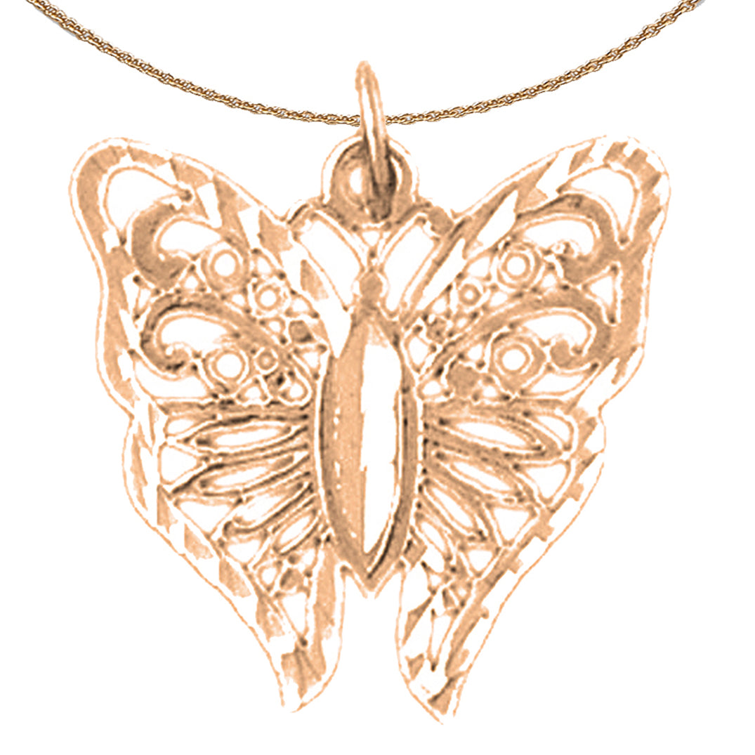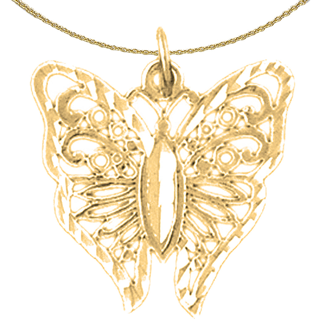 Este es un elegante colgante de mariposas en oro de 14K o 18K. Este colgante de oro de 14 quilates o 18 quilates mide 20 mm de largo por 19 mm de ancho. La medida incluye fardo. JewelsObsession crea todas las joyas de oro en nuestras instalaciones de fabricación de última generación.