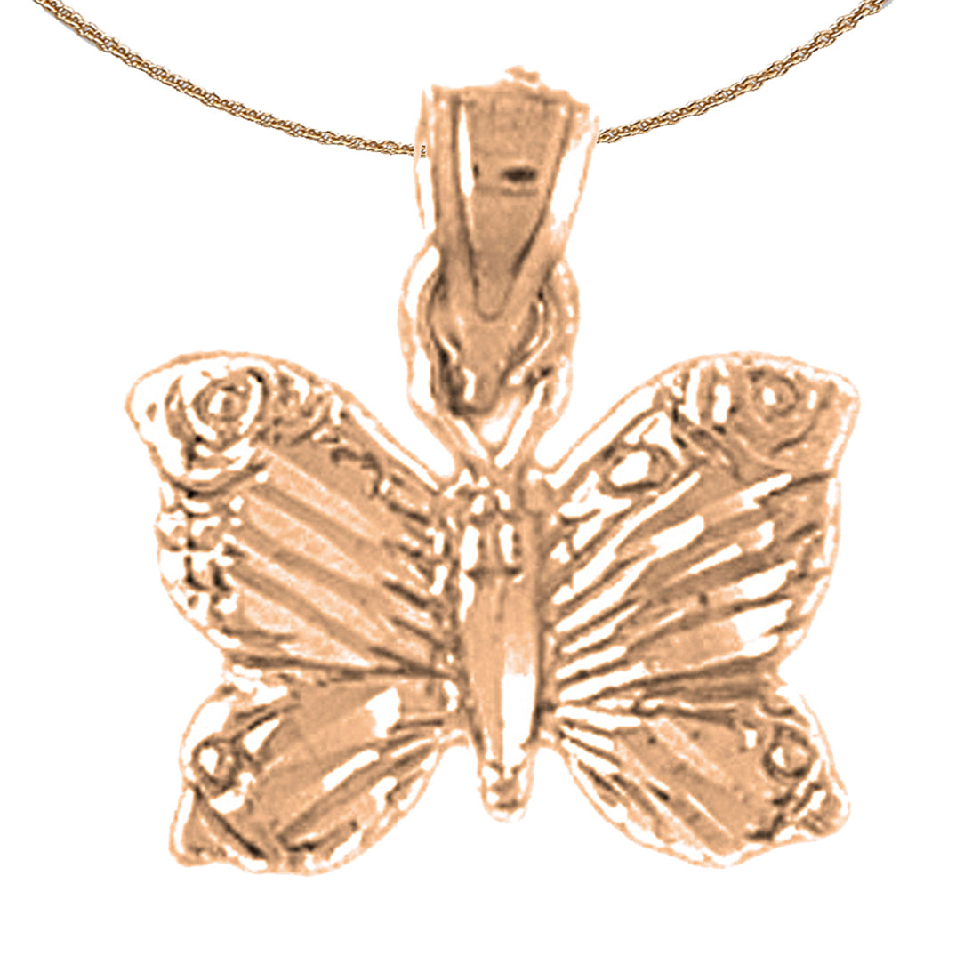 Este es un impresionante colgante de mariposas en oro de 14K o 18K. Este colgante de oro de 14 quilates o 18 quilates mide 15 mm de largo por 14 mm de ancho. La medida incluye fardo. JewelsObsession crea todas las joyas de oro en nuestras instalaciones de fabricación de última generación.