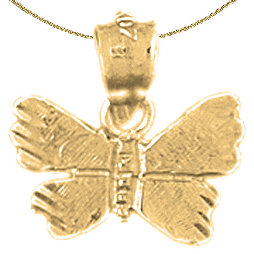 Este es un elegante colgante de mariposas en oro de 14K o 18K. Este colgante de oro de 14 quilates o 18 quilates mide 14 mm de largo por 14 mm de ancho. La medida incluye fardo. JewelsObsession crea todas las joyas de oro en nuestras instalaciones de fabricación de última generación.