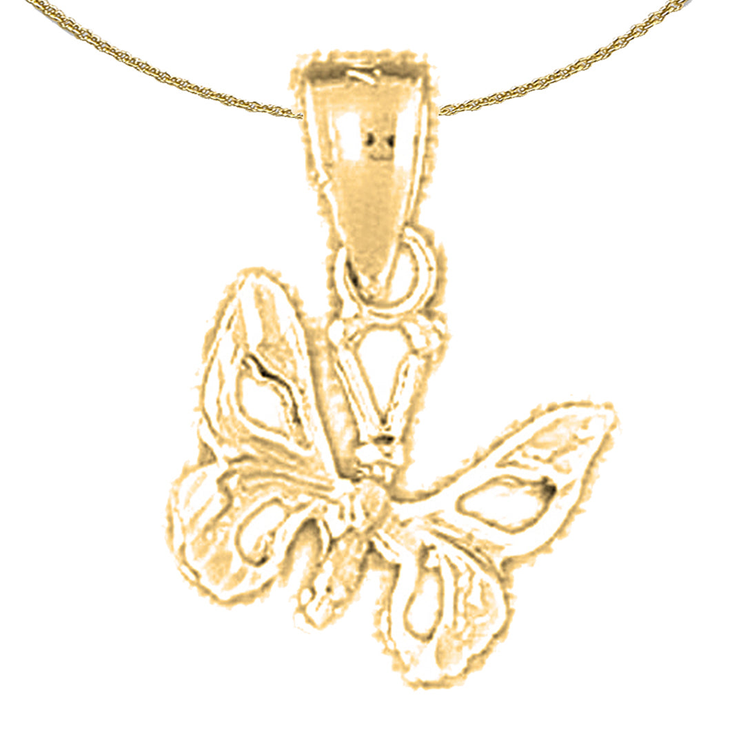 Este es un elegante colgante de mariposas en oro de 14K o 18K. Este colgante de oro de 14 quilates o 18 quilates mide 18 mm de largo por 13 mm de ancho. La medida incluye fardo. JewelsObsession crea todas las joyas de oro en nuestras instalaciones de fabricación de última generación.