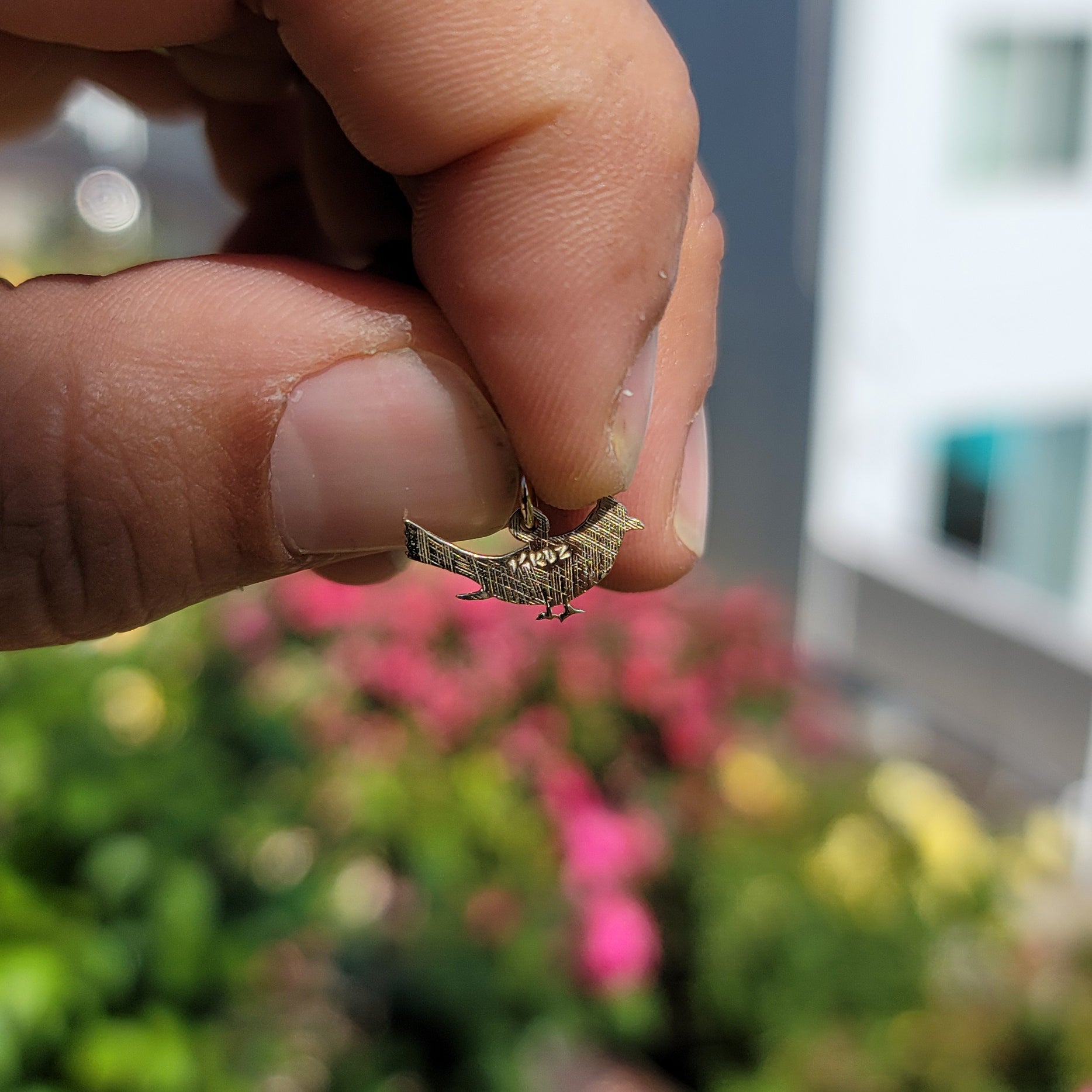 Este es un elegante colgante de pájaro de oro de 14K o 18K. Este colgante de oro de 14 quilates o 18 quilates mide 10 mm de largo por 16 mm de ancho. La medida incluye fardo. JewelsObsession crea todas las joyas de oro en nuestras instalaciones de fabricación de última generación.