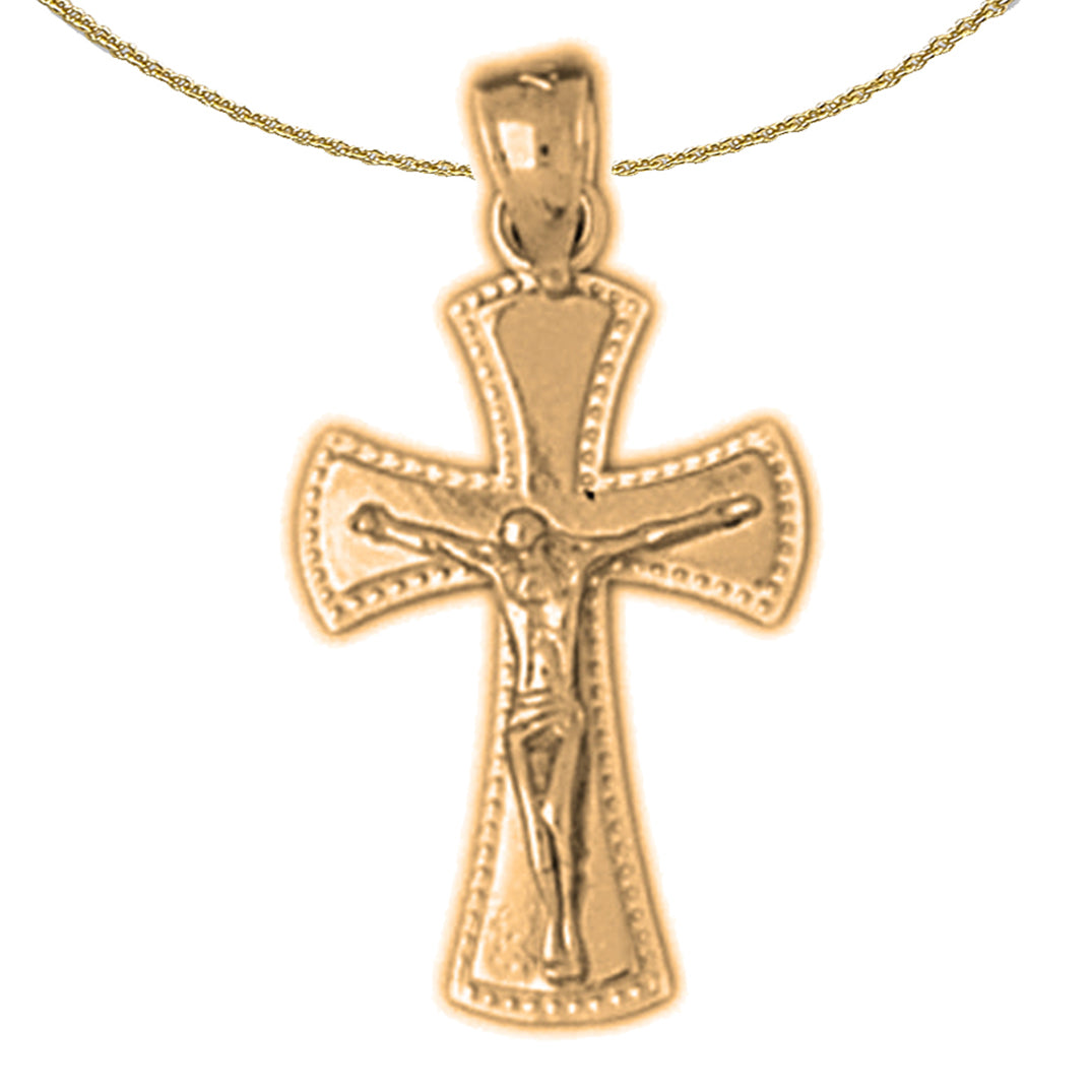 Este es un impresionante colgante de crucifijo de oro de 14 quilates o 18 quilates. Este colgante de oro de 14 quilates o 18 quilates mide 25 mm de largo por 14 mm de ancho. La medida incluye fardo. JewelsObsession crea todas las joyas de oro en nuestras instalaciones de fabricación de última generación.