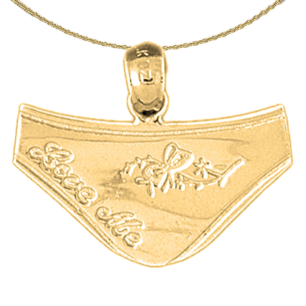 Este es un hermoso colgante de pañal de oro de 14K o 18K. Este colgante de oro de 14 quilates o 18 quilates mide 19 mm de largo por 24 mm de ancho. La medida incluye fardo. JewelsObsession crea todas las joyas de oro en nuestras instalaciones de fabricación de última generación.