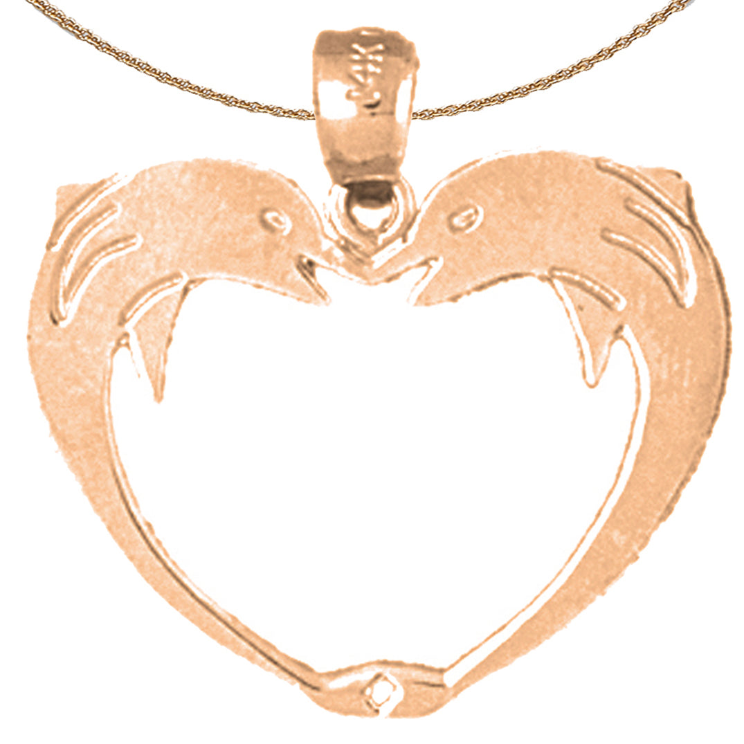 Colgante de corazón de delfín de oro de 14 quilates o 18 quilates